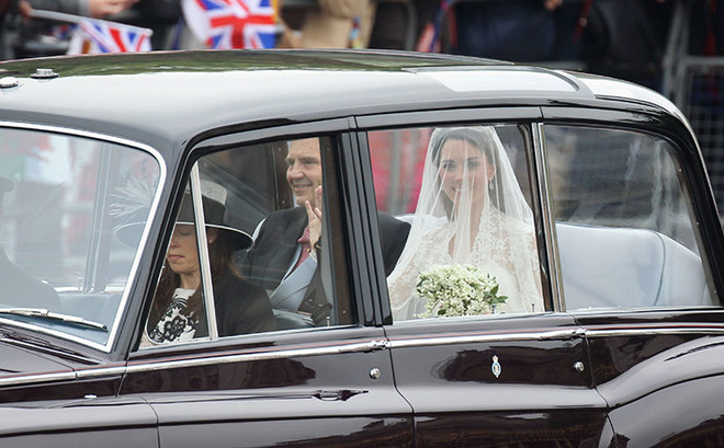 Ngay sau đó là chiếc Rolls-Royce chở ông Michael Middleton và cô dâu Kate.