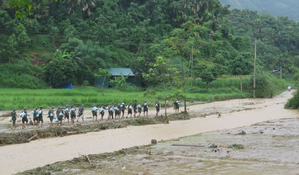 Quân khu 2 đã huy động cán bộ, chiến sỹ cơ động đến tìm kiếm các nạn nhân và hỗ trợ người dân khắc phục hậu quả trận lũ quét khiến 24 người chết và 70 người mất tích.