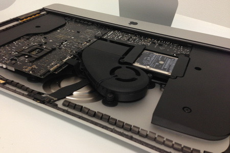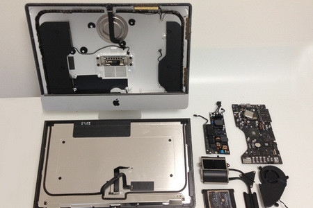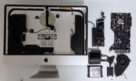Nhìn vào những hình ảnh “mổ xẻ,” người ta thấy rõ thế hệ iMac vừa phát hành córất ít thành phần có thể tháo rời, mà thay vào đó là những phần được gắn chặt,như RAM đã được hàn khít.