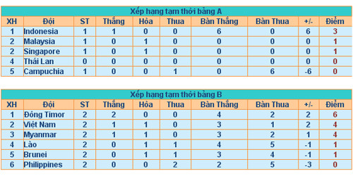 Ở hai trận đầu tiên, nếu như U23 Singapore và U23 Malaysia cầm hòa nhau ởtrận cầu không bàn thắng, thì đội chủ nhà đã có chiến thắng hủy diệt 6-0 vàolưới của Campuchia. Với kết quả này, Indonesia tạm thời dẫn đầu với 3 điểm, haivị trí tiếp theo lần lượt là Malaysia và Singapore với 1 điểm. U23 Thái Lan làđội chưa phải thi đấu./.