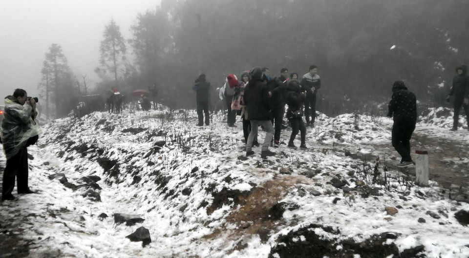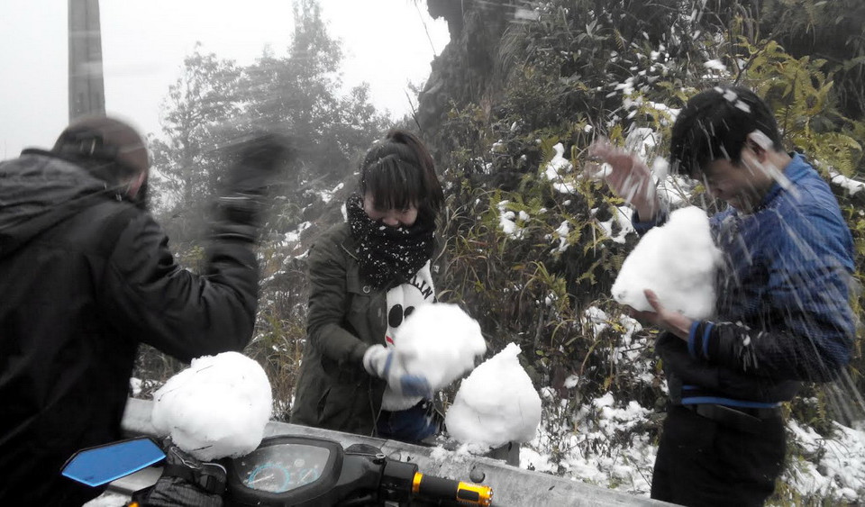 Theo quan sát của phóng viên, đến khoảng 16 giờ cùng ngày, tại đỉnh đèo Hoàng Liên Sơn, tuyết đã ngừng rơi nhưng vẫn chưa tan, có chỗ tuyết dày 10cm, đồng thời gió thổi rất mạnh. Nhiều khách du lịch mạo hiểm đứng cả xuống mép taluy âm để chụp ảnh, rất nguy hiểm đến tính mạng./.