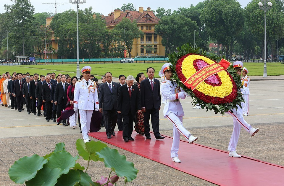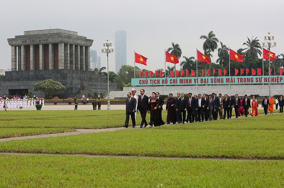 Sáng 21/5, trước giờ khai mạc Kỳ họp thứ năm, Quốc hội khóa XIV, các lãnh đạo Đảng, Nhà nước, Mặt trận Tổ quốc Việt Nam và đại biểu Quốc hội đến đặt vòng hoa và vào Lăng viếng Chủ tịch Hồ Chí Minh.