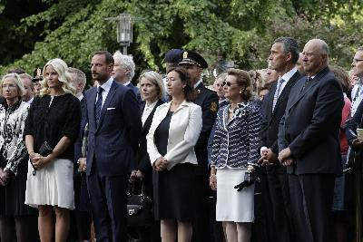 Trong ngày này, đại diện chính quyền thành phố, thân nhâncác nạn nhân và người dân đã đến đặt hoa tưởng niệm các nạn nhân bênngoài tòa nhà chính phủ tại trung tâm thủ đô Oslo và tại hòn đảo Utoeya, Tây Bắc Oslo, nơi xảy ra hai vụ thảm sát đẫm máu khiến77 người, trong đó phần lớn là thanh niên bị thiệt mạng và hơn 150 ngườibị thương.