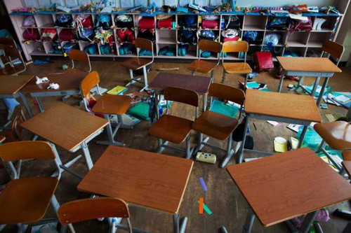 Tấm ảnh này nằm trong bộ 12 ảnh đoạt giải Ba thể loại Tin tức chung (GeneralNews Stories), chụp lại một lớp học bỏ không thuộc trường cấp hai tại Namie ngày19/6/2011, do phóng viên hãng AP thực hiện.