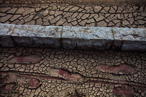 Vết chân lưu lại trên bùn khô tại khu phố Odaka thuộc Minamisoma, nằm trong khuvực sơ tán với bán kính 20km quanh nhà máy điện hạt nhân Fukushima số 1.