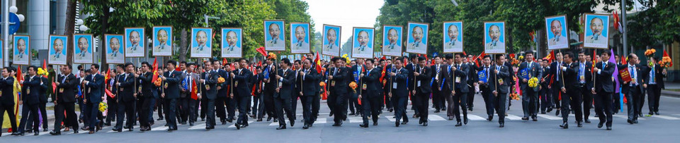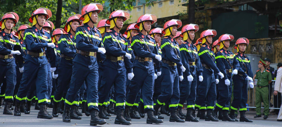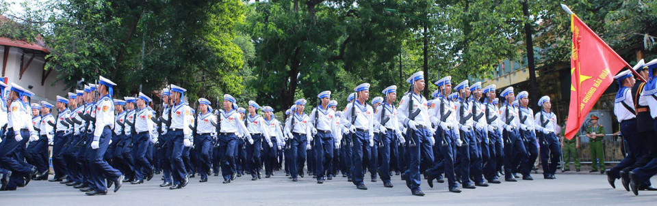 Khoảnh khắc các đoàn diễu binh chia làm 2 ngả sau khi rời Quảng trường Ba Đình đã tạo ra những hiệu ứng đặc biệt trong ngày lễ trọng đại của dân tộc (Ảnh: Lê Minh Sơn/Vietnam+)