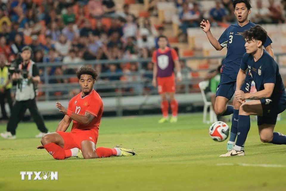 Tối 5/1, trên sân vận động Rajamangala (Bangkok), đội tuyển Việt Nam (áo đỏ) gặp đội tuyển chủ nhà Thái Lan (áo xanh) trong trận Chung kết lượt về Giải bóng đá vô địch Đông Nam Á - ASEAN Cup 2024.