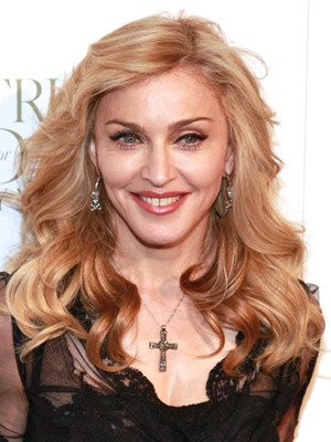 Mái tóc dài tỉa tầng từ phía trên và uốn xoăn nhẹ khiến cho gương mặt dài vàhơi góc cạnh của nữ hoàng nhạc pop Madonna trở nên nữ tính mà vẫn rất cá tính.