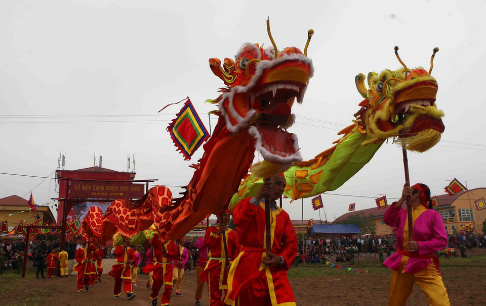 Múa rồng trong ngày khai hội. (Ảnh: Thanh Tùng/TTXVN)