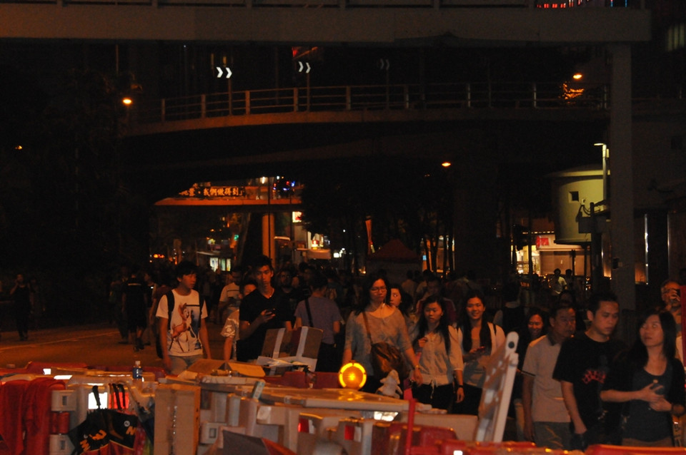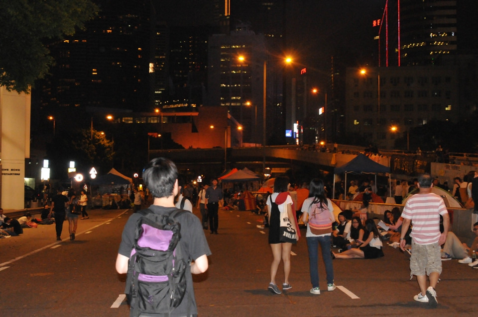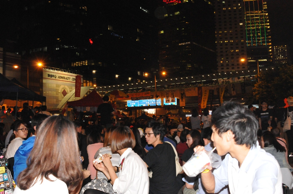 Theo quan sát, lượng người biểu tình ''Chiếm Trung tâm'' ở Admiraly không nhiều bằng quãng thời gian cao điểm của cuộc biểu tình trong một vài ngày đầu tháng này. (Ảnh: Tiến Trung/Vietnam+)