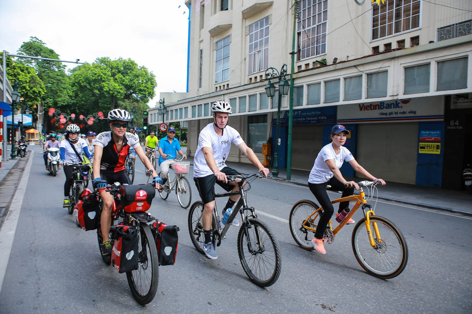 Hành trình đạp xe của Đại sứ Ted Osius cùng những người bạn của ông xuyên suốt các con phố chính ở Hà Nội. (Ảnh: Minh Sơn/Vietnam+)