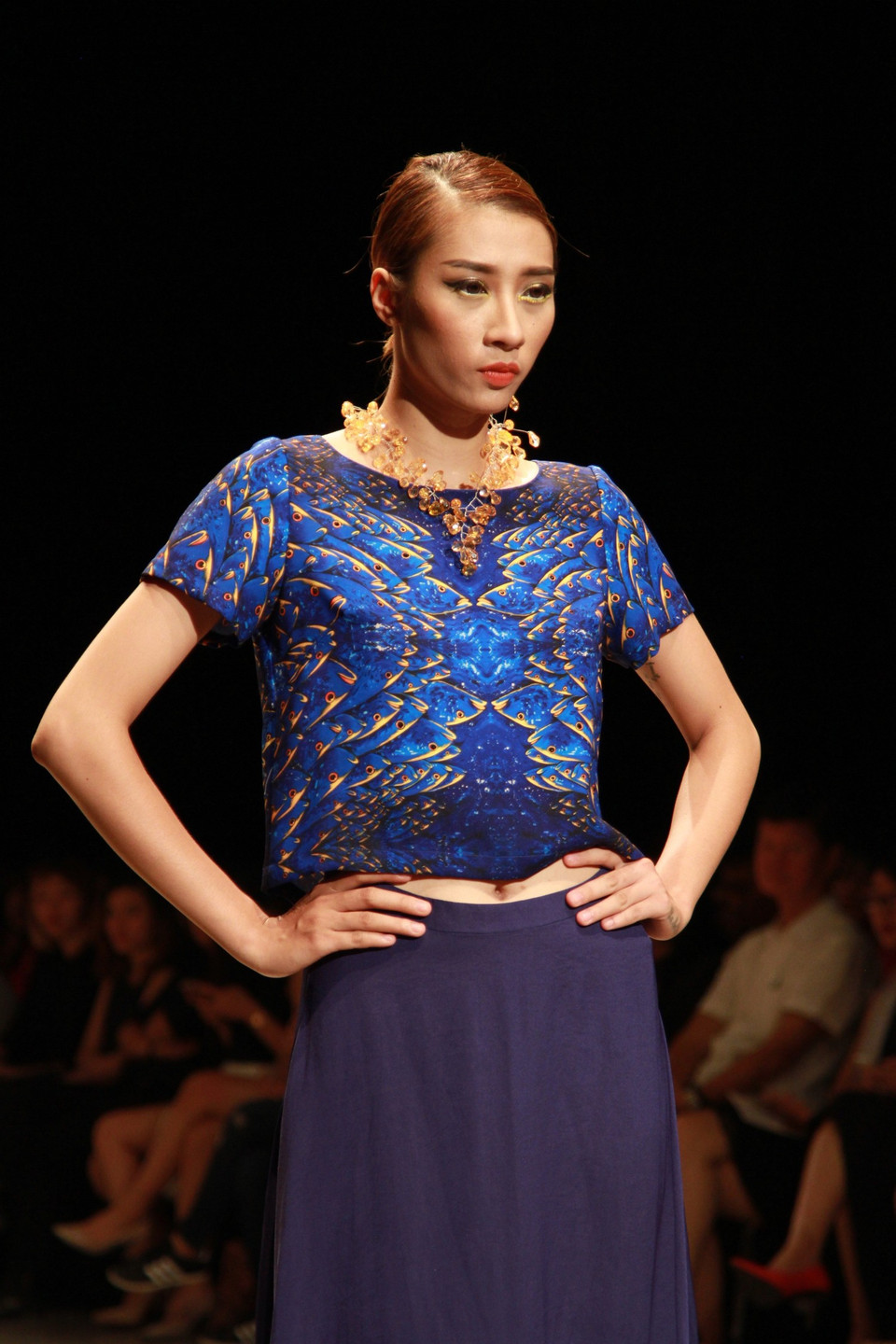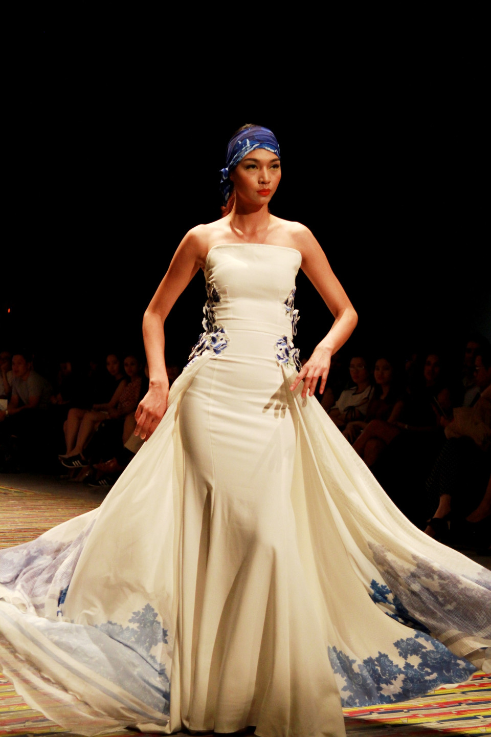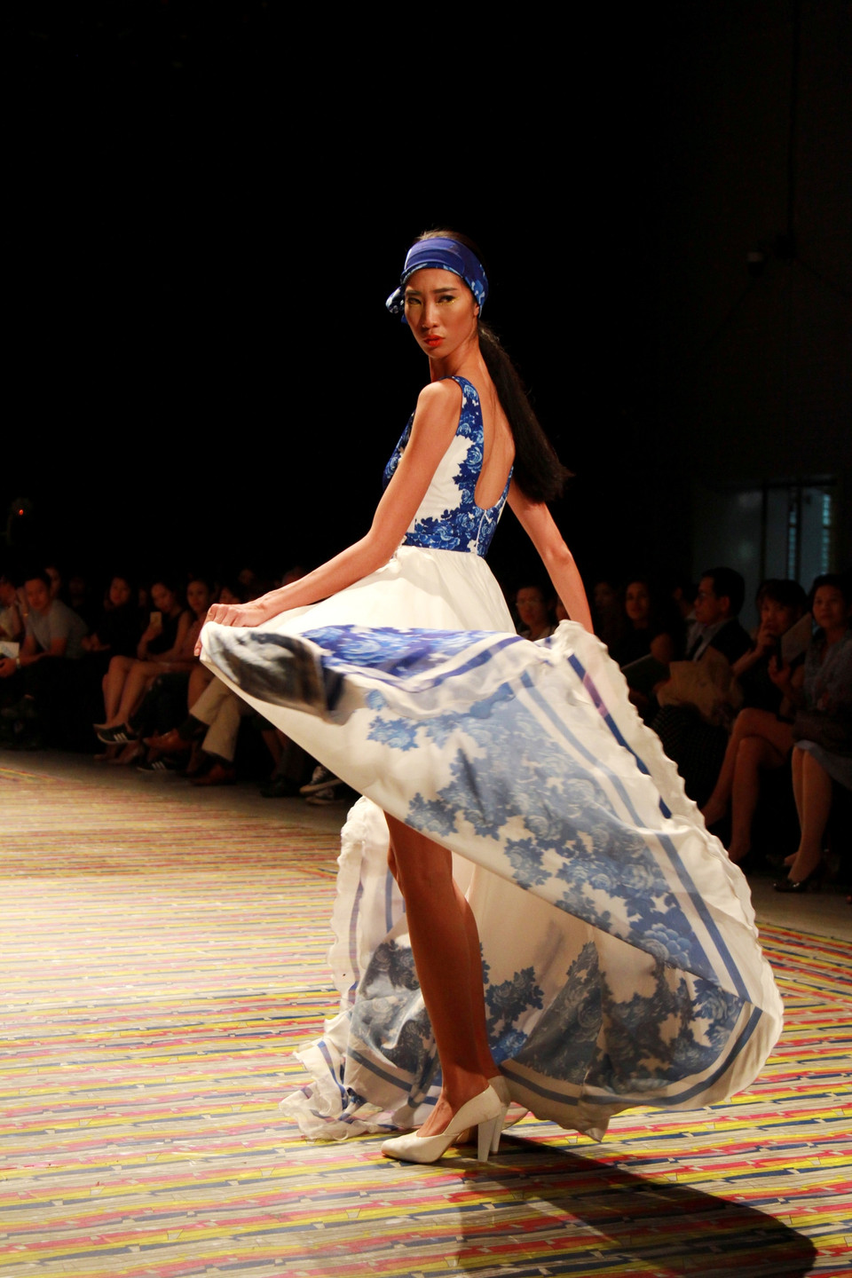 Những thiết kế của Ngọc Hân lấy cảm hứng từ vẻ đẹp của gốm men lam Việt Nam.
