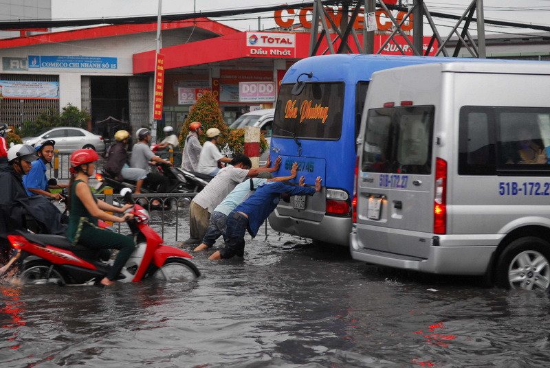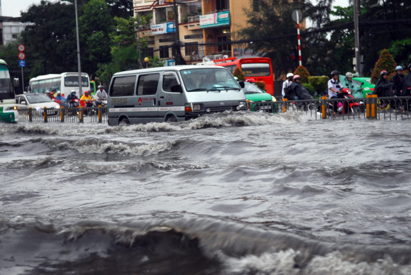 Khoảng 14h ngày 9/9/2015, một cơn mưa lớn diễn ra trên diện rộng và kéo dài nhiều giờ liền khiến nhiều tuyến đường tại TP. Hồ Chí Minh bị ngập sâu trong biển nước.