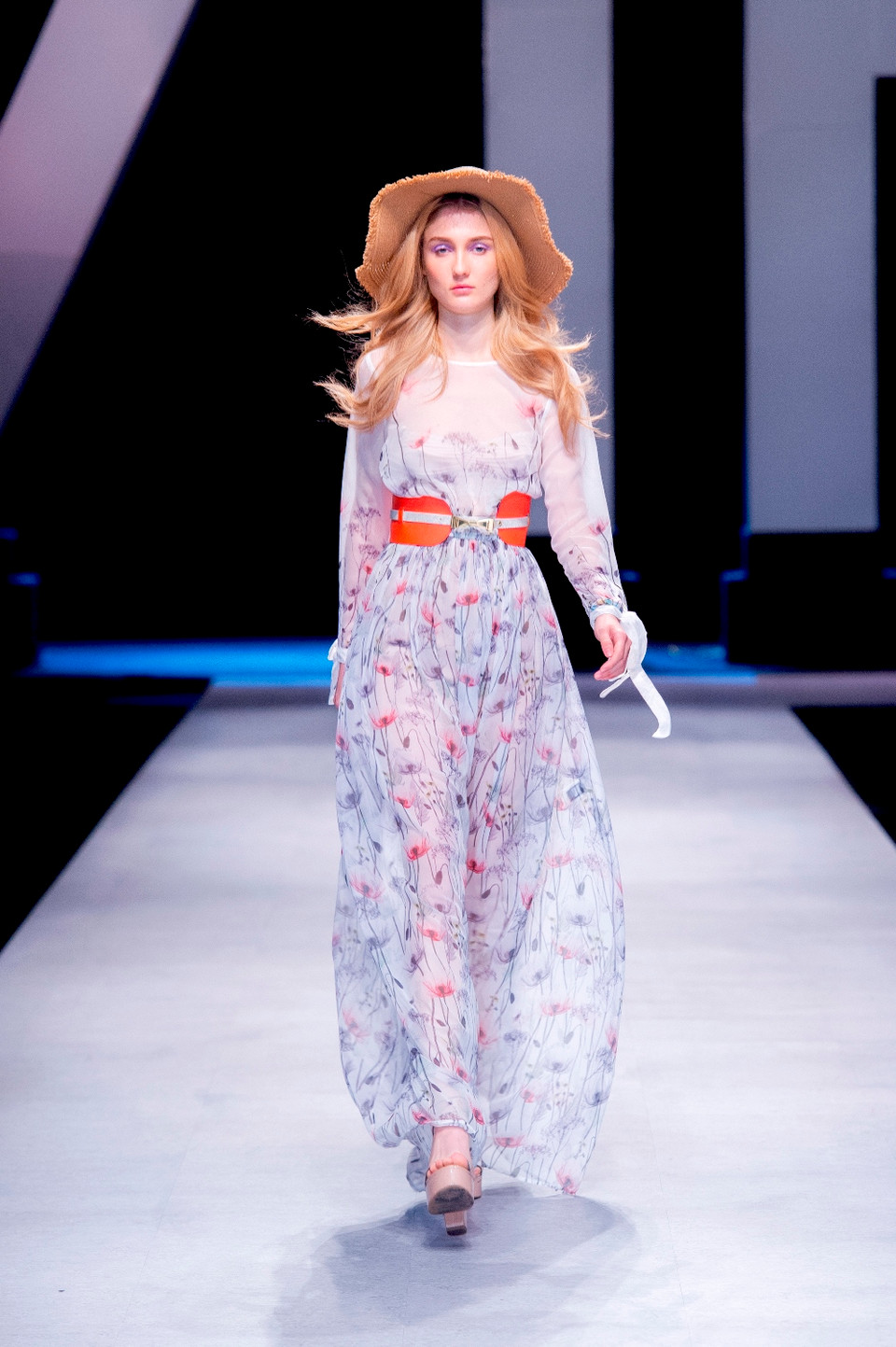 Bên cạnh đó, mũ rộng vành, túi clutch trong suốt, thắt lưng to bản và giày gót vuông cũng chính là những điểm nhấn của bộ sưu tập.