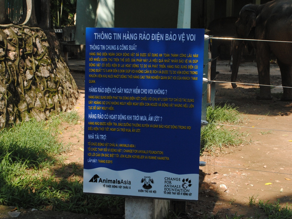 Hàng rào điện khu chăm sóc voi có 4 dây, cao 2m, với tổng chiều dài lắp đặt 180 m, được các nhân viên của Tổ chức động vật Châu Á, các tình nguyện viên, và nhân viên Vườn thú lắp đặt trong 2 tuần, giúp đảm bảo an toàn cho voi và khách thăm quan.