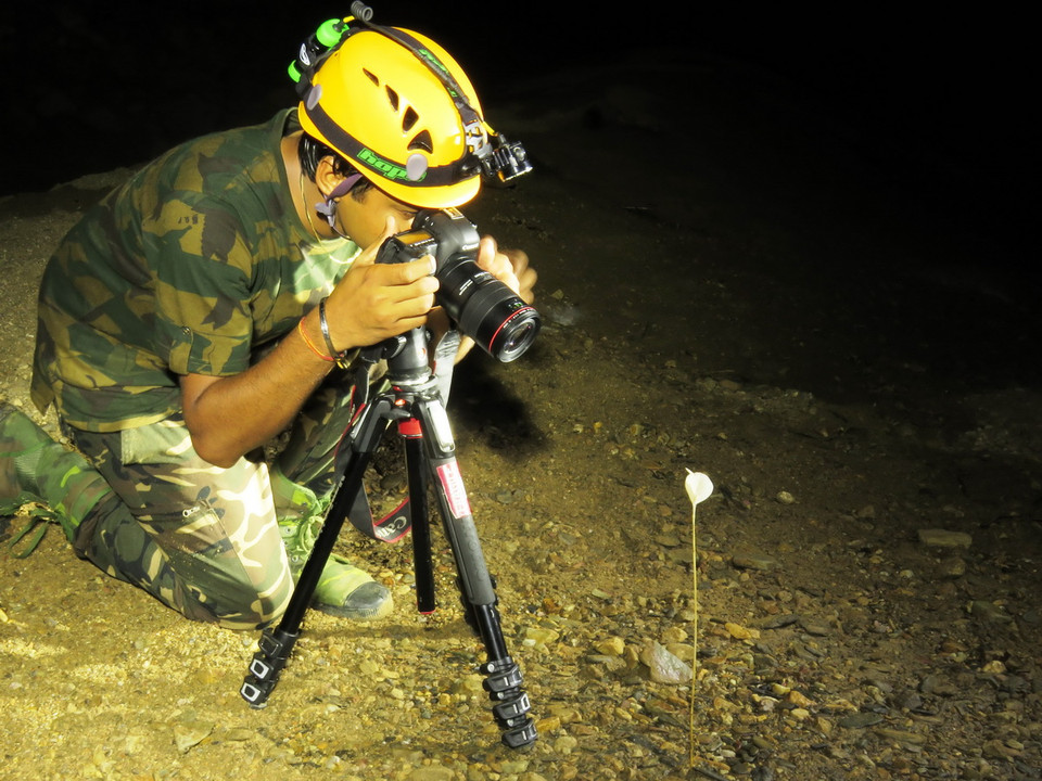 Những người thám hiểm, khám phá vượt bức tường đá cao tại Hang Va. (Ảnh: Đức Thọ-Mạnh Thành/TTXVN)
