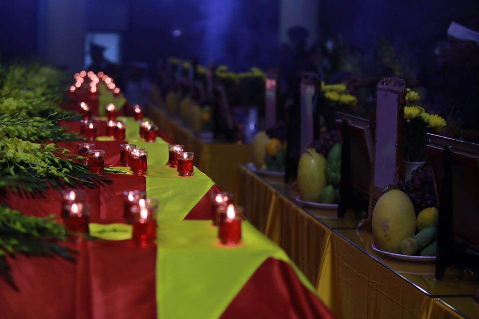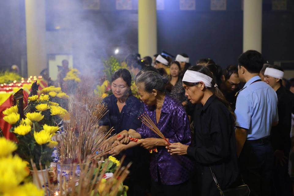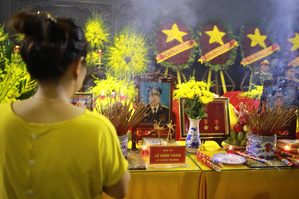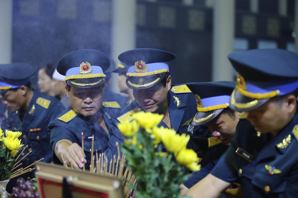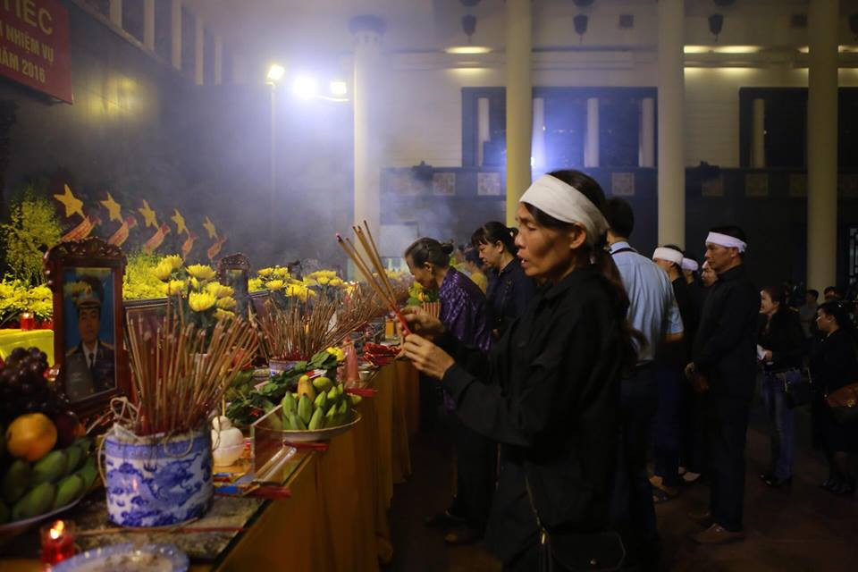 Ngay từ 6 giờ sáng, hàng dài những người thân và đồng đội đã thắp những nén hương tưởng nhớ đến 9 phi công đã hy sinh.