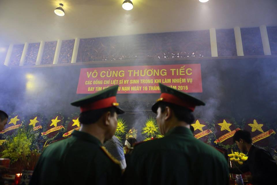 Ngay từ 6 giờ sáng, hàng dài những người thân và đồng đội đã thắp những nén hương tưởng nhớ đến 9 phi công đã hy sinh. Dự kiến khoảng 7 giờ sẽ diễn ra lễ viếng 9 liệt sỹ hy sinh trong vụ máy bay CASA-212. Người thân nghẹn ngào trước linh cữu của các phi công đã hy sinh. Nhiều người không kìm nén được cảm xúc đã bật khóc. Nhiều người không kìm nén được cảm xúc đã bật khóc. Người thân của các phi công đã hy sinh. Người thân của các phi công đã hy sinh. [Photo] Hình ảnh xúc động tại Lễ viếng, truy điệu 9 phi công CASA-212