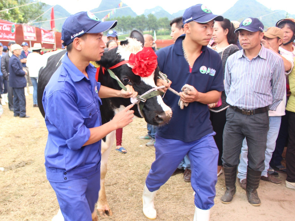 Giải nhất của hội thi dành cho bò sữa đạt 'vương miện' hoa hậu có giá trị 60 triệu đồng. (Ảnh: Hùng Võ/Vietnam+)