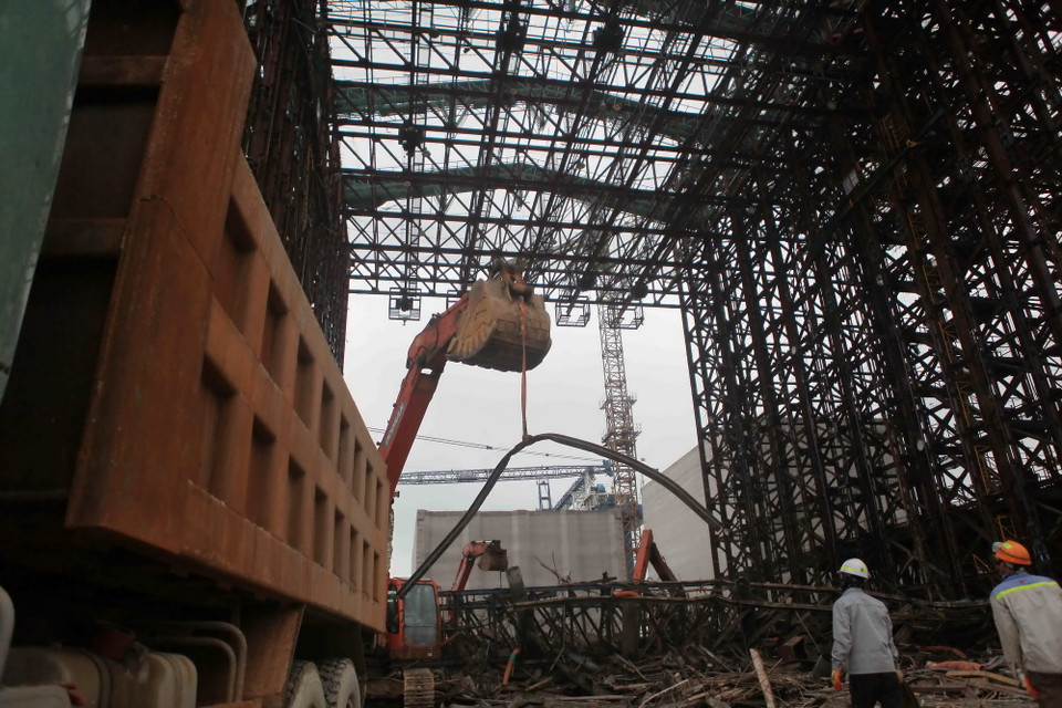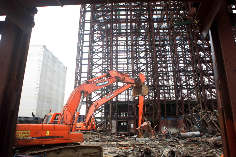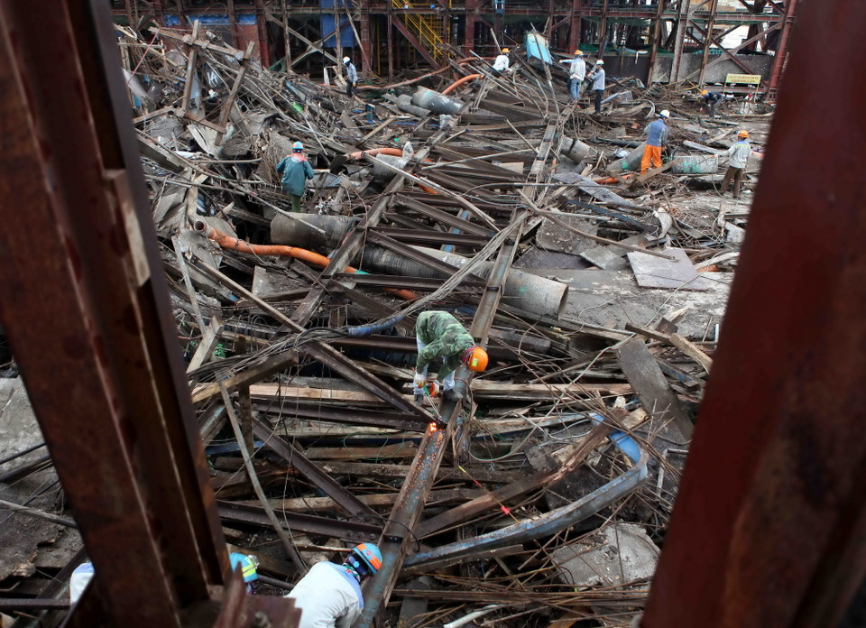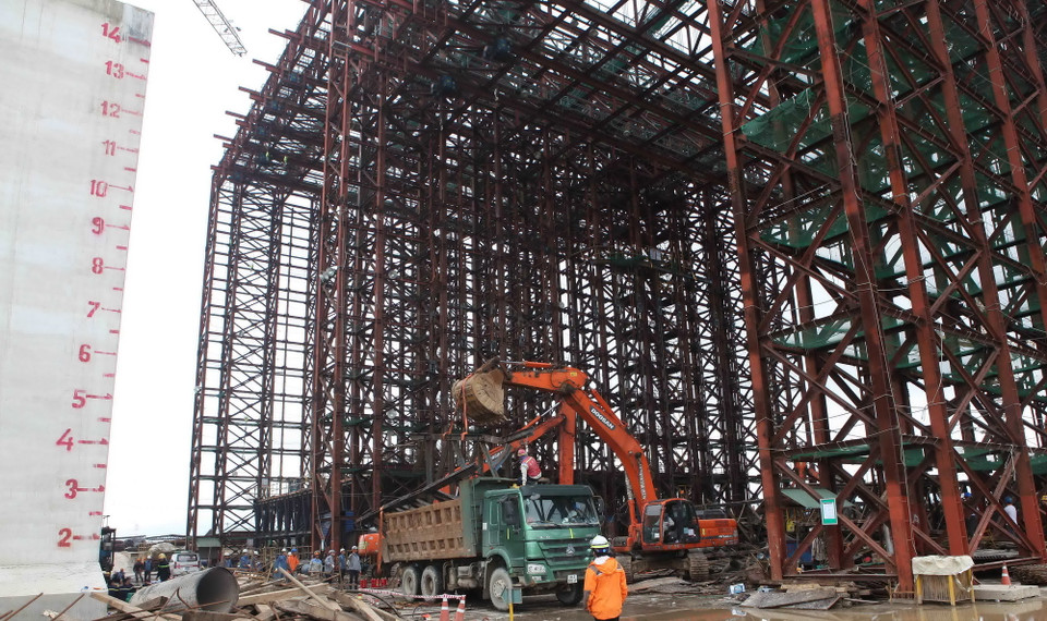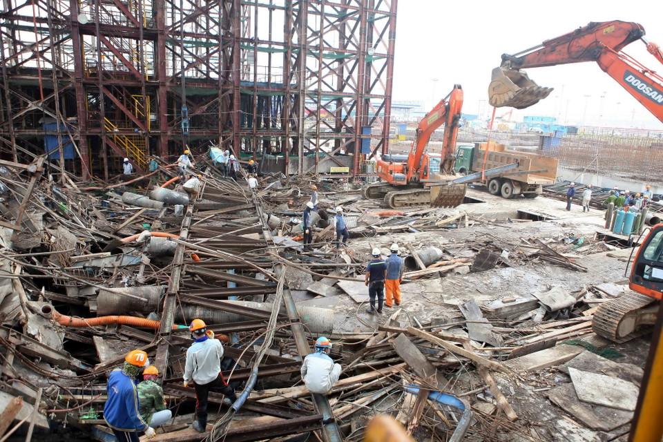 Vụ tai nạn sập giàn giáo nghiêm trọng xảy ra khoảng 20 giờ 25 tối 25/3 trên công trường thi công thuộc dự án Formosa, Khu Kinh tế Vũng Áng, huyện Kỳ Anh (Hà Tĩnh). (Ảnh: Thanh Tùng/TTXVN)