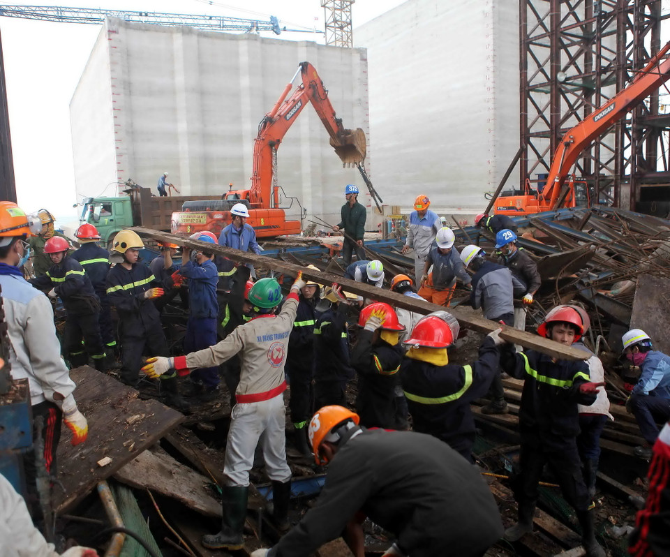 Lực lượng chức năng đang tích cực triển khai khắc phục hậu quả, nỗ lực tìm kiếm, cứu hộ các nạn nhân trong vụ sập giàn giáo nghiêm trọng tại dự án Formosa Vũng Áng.