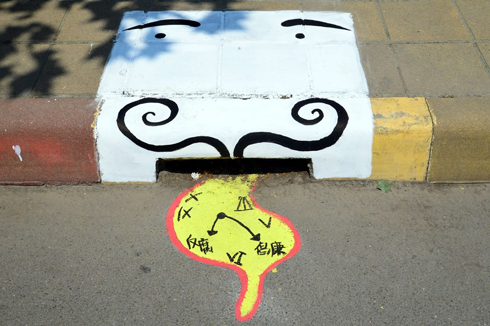 Một sinh viên mỹ thuật ở tỉnh Sơn Đông, Trung Quốc đã trang trí hệ thống cống rãnh một cách rất sáng tạo khi biến hóa chúng thành một phần của những bức tranh châm biếm về nạn tham nhũng ở nước này.