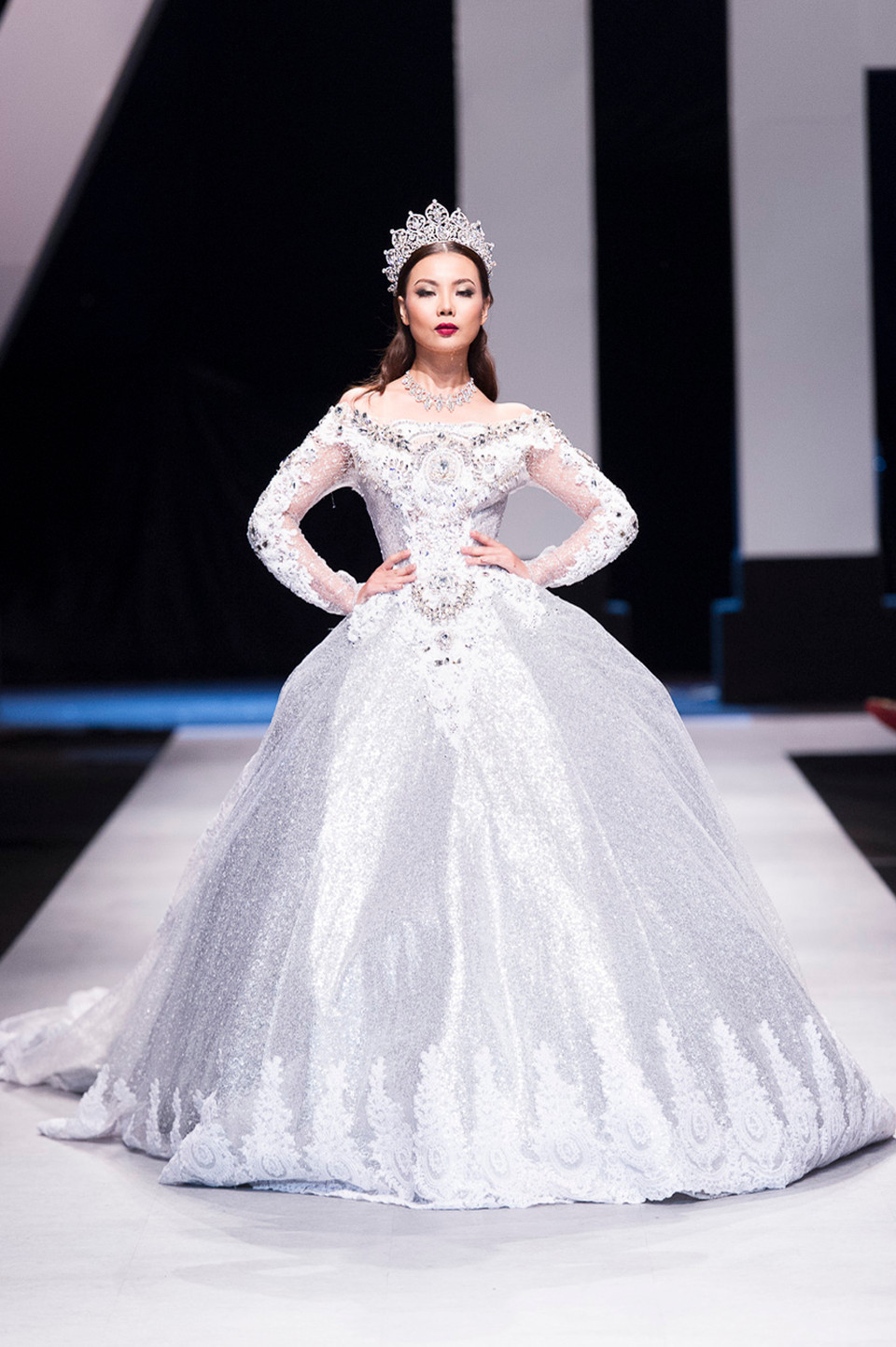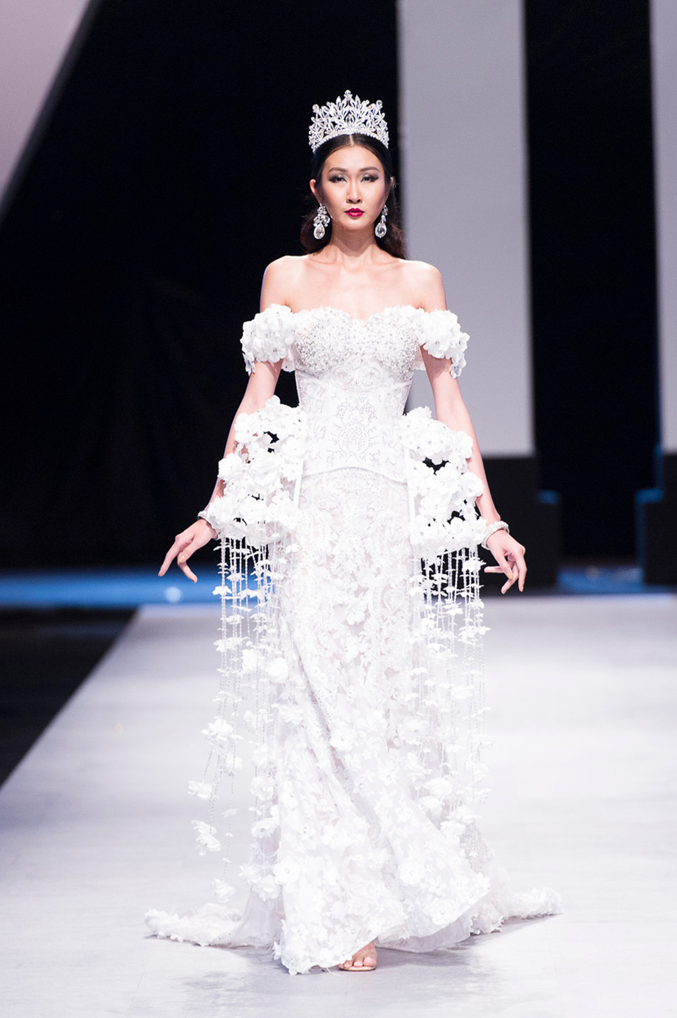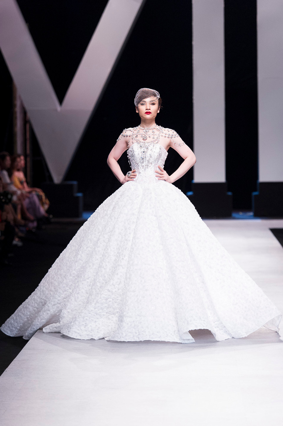 Các thiết kế lộng lẫy được đính kết hoàn toàn bằng pha lê ngoại nhập đã tạo nên vẻ lộng lẫy và xa hoa đến từng chi tiết. (Ảnh: BTC)
