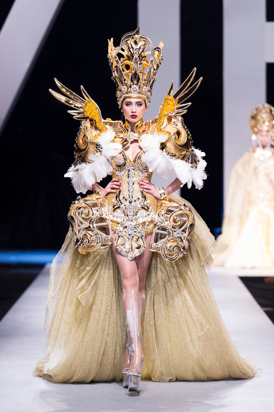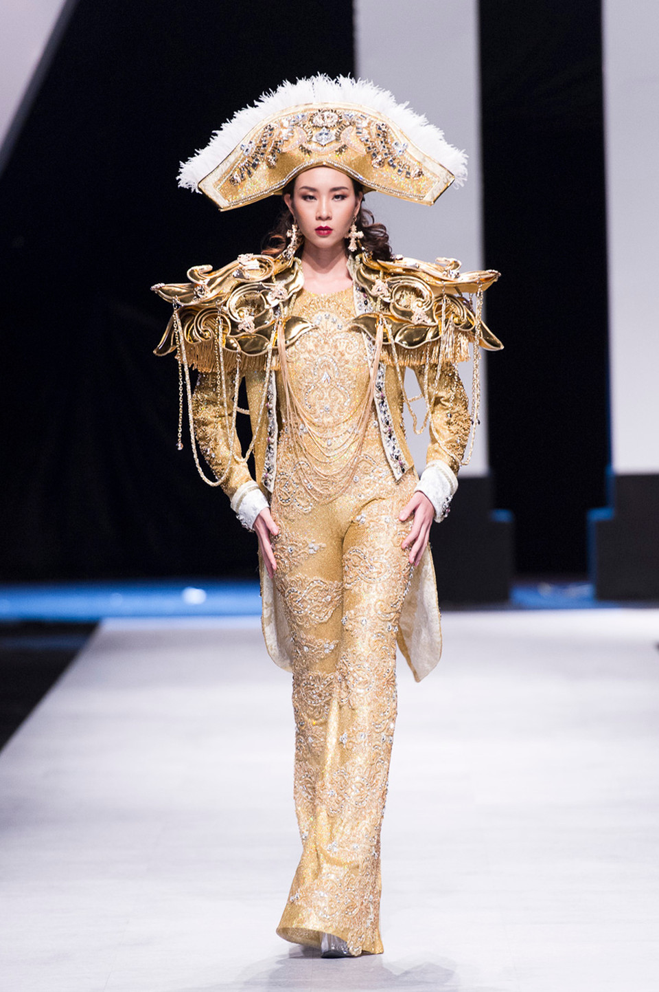 Những thiết kế bằng giáp mạ vàng cũng là điểm nhấn đặc biệt của Lê Long Dũng trong các thiết kế lần này. (Ảnh: BTC)