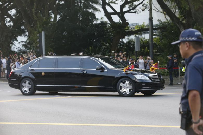 Không lâu sau đó đoàn xe chở ông Kim Jong-un cũng rời khách sạn để đến địa điểm diễn ra hội nghị. (Nguồn: Straits Times)