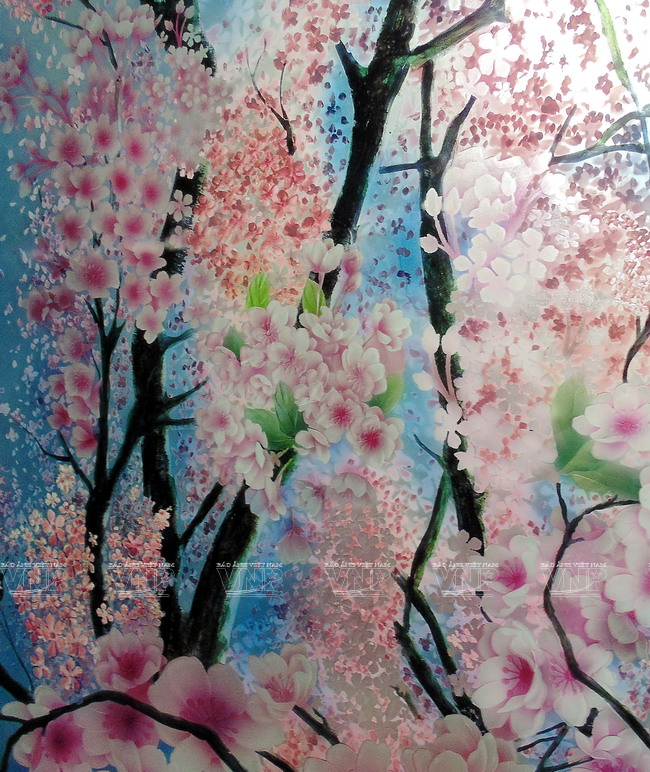 Các chi tiết được vẽ thành nhiều lớp khác nhau trên mặt kính. (Ảnh: Trịnh Văn Bộ/Báo ảnh Việt Nam)
