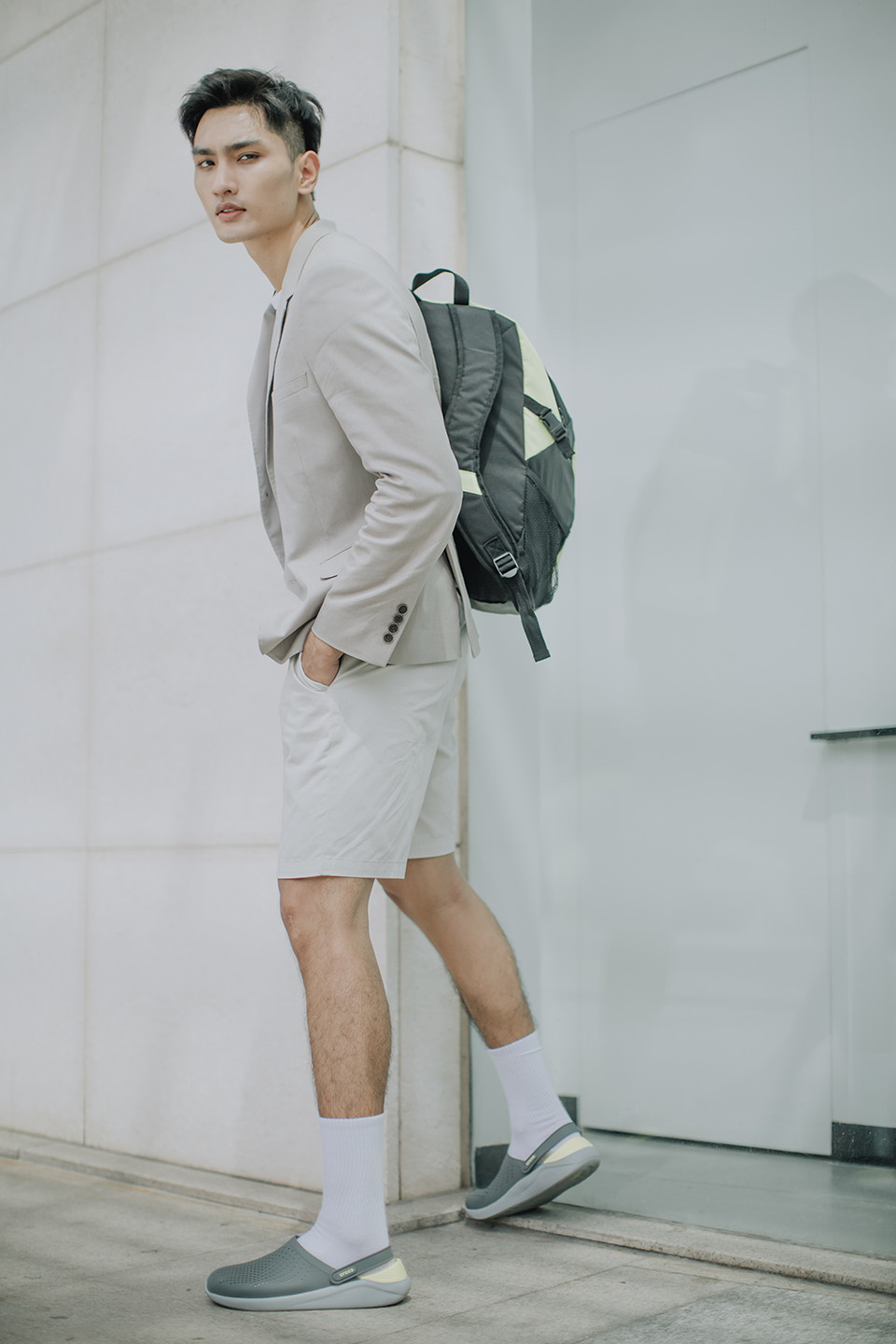 Huy Quang và Quỳnh Anh mang đến nét tươi mới với set đồ mang hơi hướng thể thao phá cách khi kết hợp các món đồ đơn giản cùng với đôi giày Crocs nổi bật.