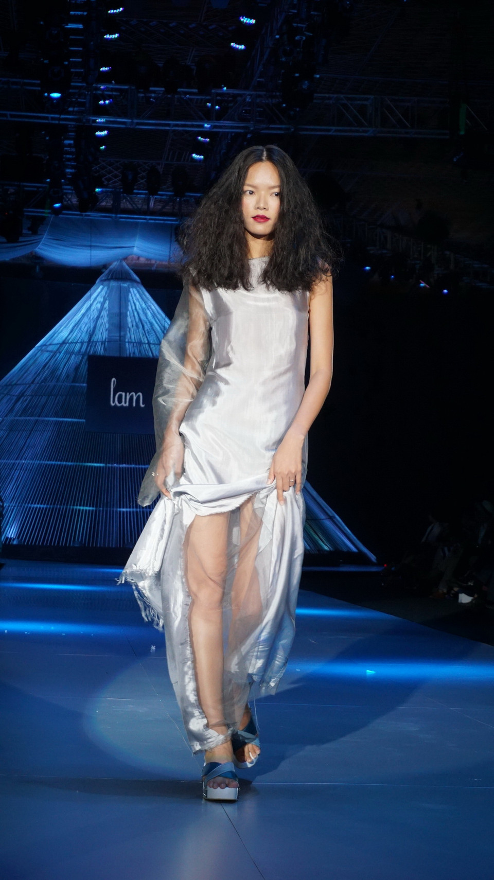 Li Lam, nhà thiết kế nữ duy nhất trong nhóm nhà thiết kế người Việt có bộ sưu tập trình diễn tại Tuần lễ Thời trang Quốc tế Việt Nam. Chị đã để lại ấn tượng mạnh cho người xem khi để người mẫu "điên".