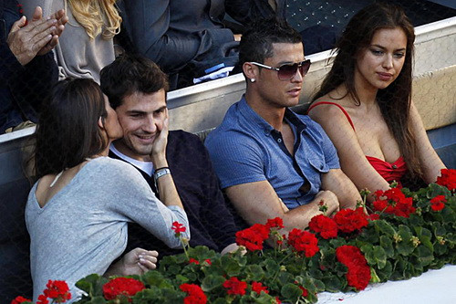 Cùng ngồi trên khán đài VIP với bộ đôi nổi tiếng này còn có thủ thành IkerCasilla và bạn gái, đồng thời là nữ phóng viên nổi tiếng của Tây Ban Nha, SaraCarbonero. Cặp đôi này cũng tỏ ra tình tứ không hề kém cạnh khi công khai dànhtặng nhau những nụ hôn.