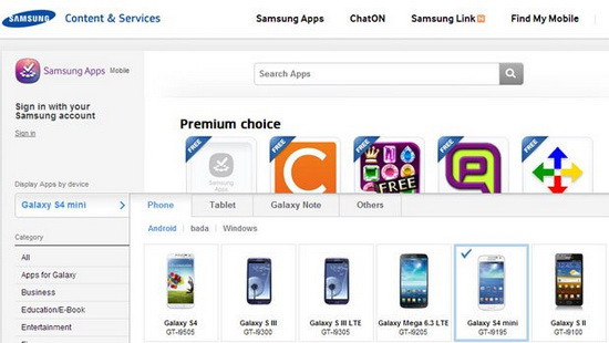 Cụ thể, trong mục ứng dụng chính thức của Samsung dành cho thị trường Anh, ngườita thấy Galaxy S4 mini xuất hiện với số mã GT-9195, bên cạnh các thiết bị quenthuộc khác. Sau khi để xảy ra sơ suất trên, Samsung đã gỡ bỏ danh sách nói trên.