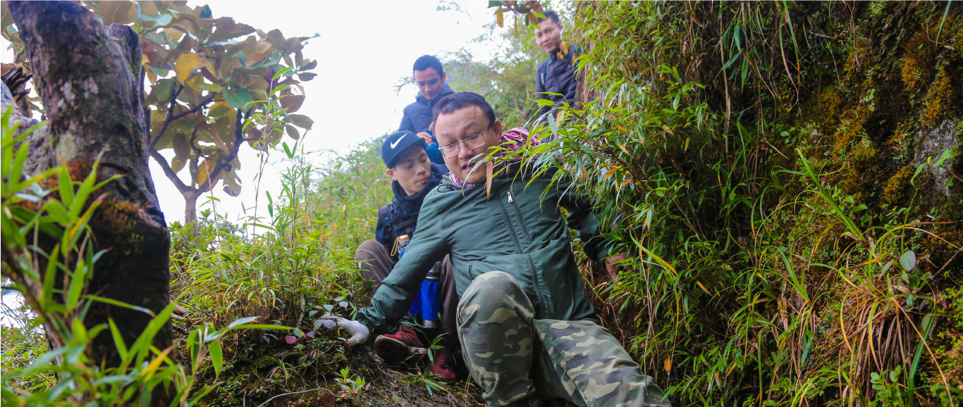 Mr. Luc Thanh Chien, a local who knows Fansipan very well, told us that we would be trying to take one of the hardest routes to the summit. In fact, there wasn’t even a trail to take. Chien said the mountain-dwelling locals only came to this area during the season of cardamom. “Are you sure you want to take this trail?” he asked.