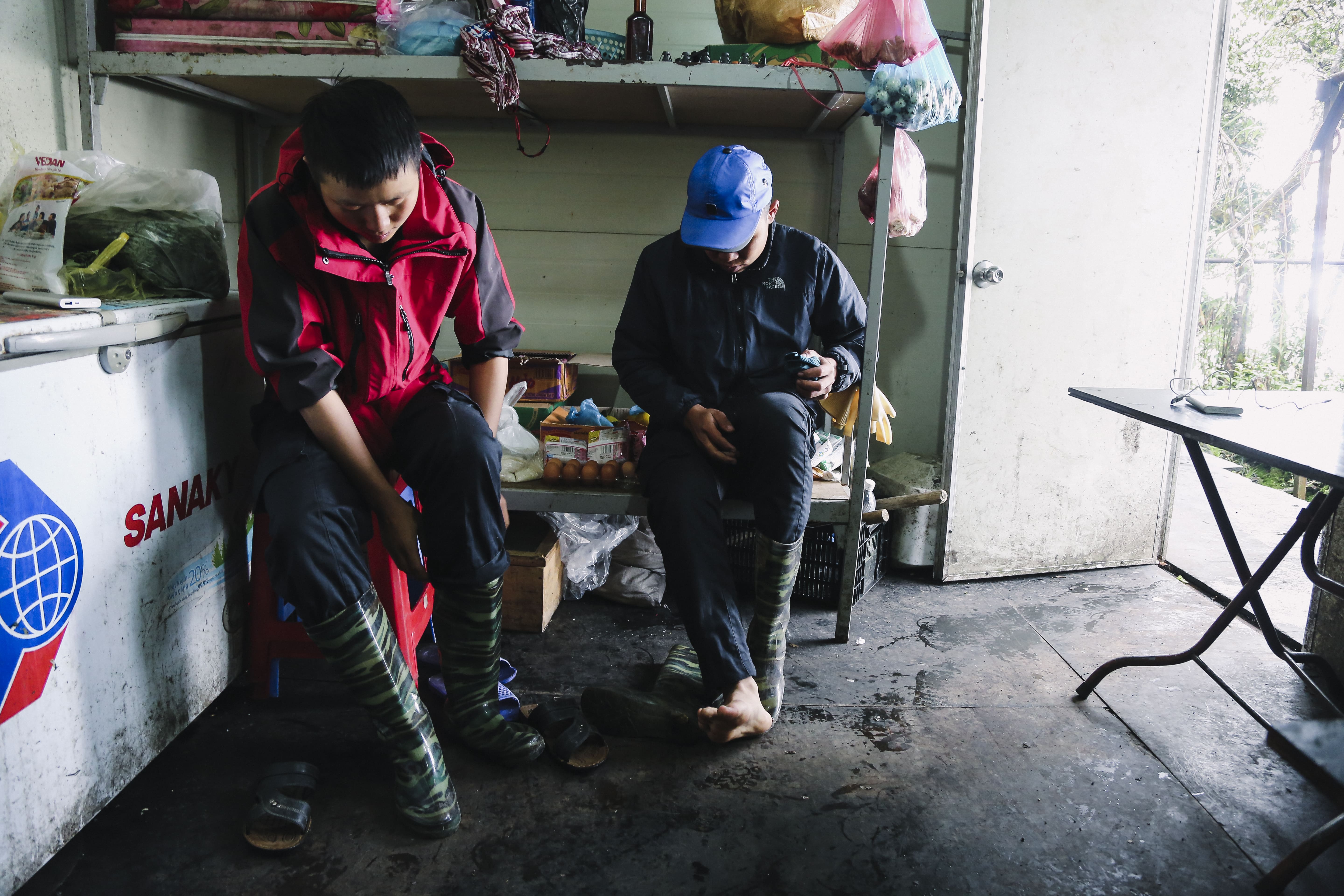 Down time: After finishing their morning's work, the two young men can attend to their personal needs. "Normally we shower every two days, but in winter, once a week," says Tuan.