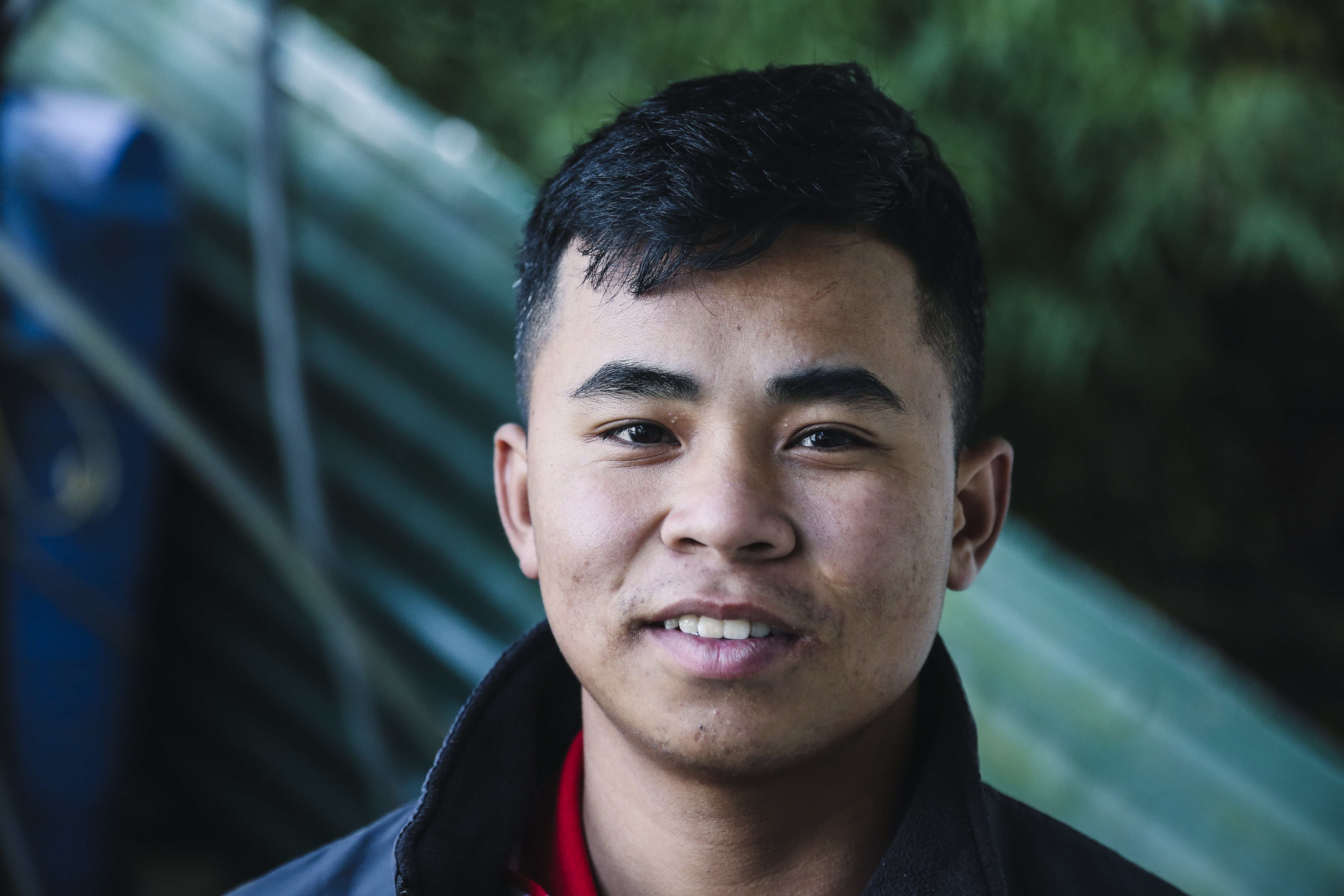 Local hero: Hoang Anh Tuan, an ethnic Day from Muong Khuong village in Lao Cai Province, is just 18 years old but has already been working as a security guard for the T-pillars for more than a year.