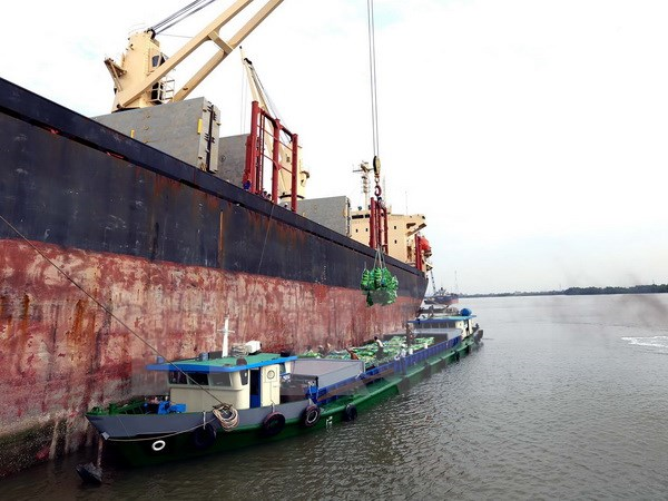 Loading of rice for transport by ship at Sai Gon port. (Source: Vũ Sinh/TTXVN)
