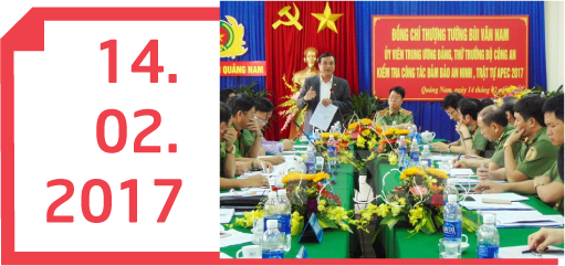 Để chuẩn bị cho Diễn đàn hợp tác kinh tế châu Á-Thái Bình Dương (APEC) 2017, ngày 14/2, tại thành phố Hội An, tỉnh Quảng Nam phối hợp với Đoàn công tác của Bộ Công an tổ chức kiểm tra, rà soát công tác chuẩn bị cho Năm APEC 2017 với mục tiêu đảm bảo an toàn tuyệt đối cho một số hoạt động diễn ra trên địa bàn.