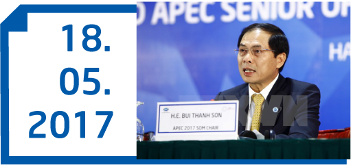 Hội nghị lần thứ hai các quan chức cao cấp (SOM 2) Diễn đàn hợp tác kinh tế châu Á-Thái Bình Dương (APEC) diễn ra tại Hà Nội từ ngày 17-18/5/2017 đã thành công tốt đẹp với sự tham dự của các đại biểu đến từ 21 nền kinh tế thành viên, đại diện Hội đồng hợp tác kinh tế Thái Bình Dương, Hội đồng tư vấn doanh nghiệp, một số tổ chức quốc tế và khu vực cùng một số đại diện doanh nghiệp.