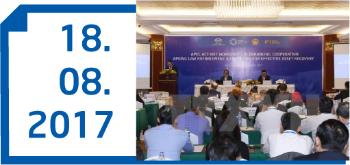 Trong khuôn khổ hoạt động Hội nghị quan chức cao cấp APEC lần thứ 3 (SOM 3), ngày 18/8, tại Thành phố Hồ Chí Minh, Mạng lưới các cơ quan chống tham nhũng và thực thi pháp luật APEC (ACT-NET) tổ chức hội thảo về tăng cường hợp tác giữa các cơ quan thực thi pháp luật trong thu hồi tài sản.