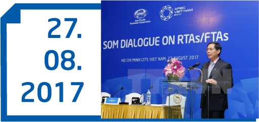 APEC 2017: Đẩy mạnh liên kết kinh tế ở khu vực châu Á-Thái Bình DươngTrong khuôn khổ Diễn đàn hợp tác kinh tế châu Á-Thái Bình Dương (APEC), ngày 27/8, tại Thành phố Hồ Chí Minh, Bộ Công Thương phối hợp với Ban Thư ký APEC quốc tế tổ chức Đối thoại của APEC về các Hiệp định Thương mại khu vực và Hiệp định Thương mại tự do (RTA/FTA) trong khu vực châu Á-Thái Bình Dương.