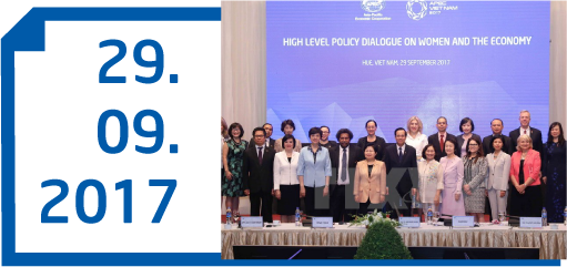 Trong khuôn khổ Diễn đàn Phụ nữ và Kinh tế APEC 2017, ngày 28/9, tại thành phố Huế, Bộ Lao động-Thương binh và Xã hội phối hợp với Phòng Thương mại và Công nghiệp Việt Nam tổ chức khai mạc "Đối thoại công-tư về Phụ nữ và Kinh tế" với chủ đề: Phụ nữ là doanh nhân.