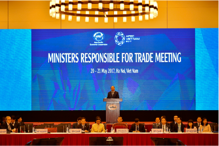 Hội nghị Bộ trưởng đầu tiên của APEC trong năm 2017 tại Hà Nội ngoài việc nhất trí tiếp tục thúc đẩy hoàn tất các mục tiêu Bogor về tự do hóa thương mại và đầu tư năm 2020, còn thể hiện quyết tâm của APEC trong việc tiếp tục xây dựng một hệ thống thương mại đa phương bền vững, minh bạch, lấy luật lệ làm cơ sở.