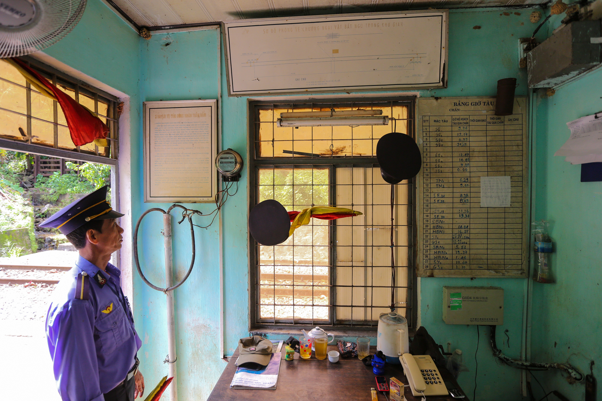 Trưởng ga Hải Vân là anh Trịnh Văn Thành (34 tuổi). Thành là người dân gốc Thanh Hóa nhưng cả gia đình anh đã dọn vào Đà Nẵng sống từ lâu. Anh Thành đã là Trưởng ga Hải Vân gần 5 năm nay. (Ảnh: Minh Sơn/Vietnam+)