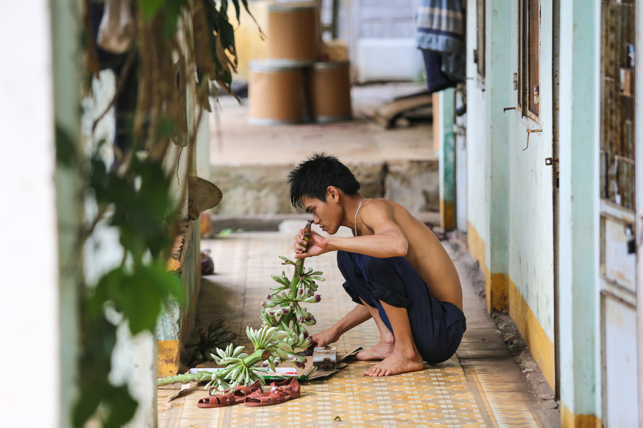 Những chiếc dép cao su, đặc sản của lính cầu đường ngành đường sắt. Những đôi dép trông đơn giản nhưng rất bền và chắc chắn. Mưa gió đi không sợ trơn trượt. (Ảnh: Minh Sơn/Vietnam+)