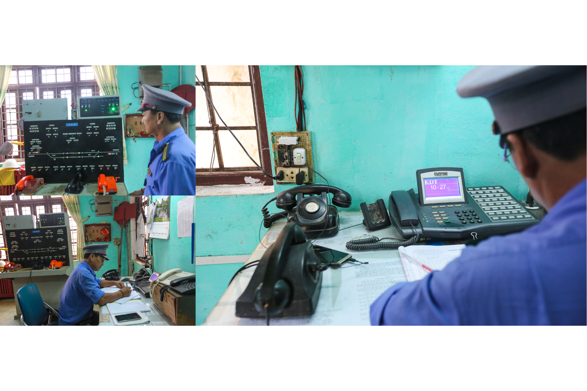 Chú Phan Viết Định (52 tuổi) là trực ban chạy tàu gần 30 năm nay. Công việc chính của chú Định là tổ chức chạy tàu, chống vượt, đảm bảo an toàn đường sắt. Công việc của chú Định đầy áp lực khi luôn luôn phải theo dõi sát sao lịch chạy của tàu nhằm đảm bảo các chuyến tàu được thông suốt không gặp trở ngại. (Ảnh: Minh Sơn/Vietnam+)