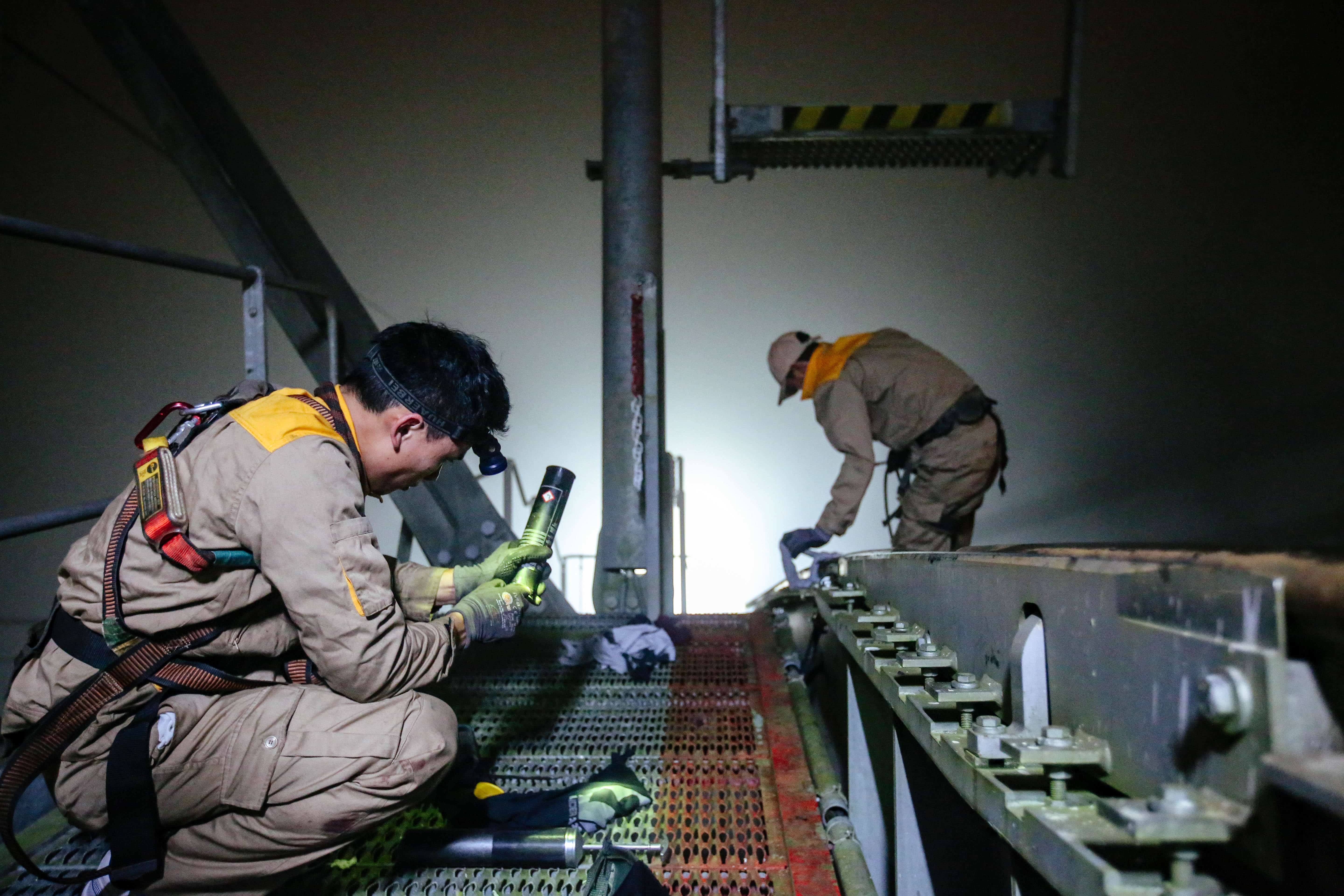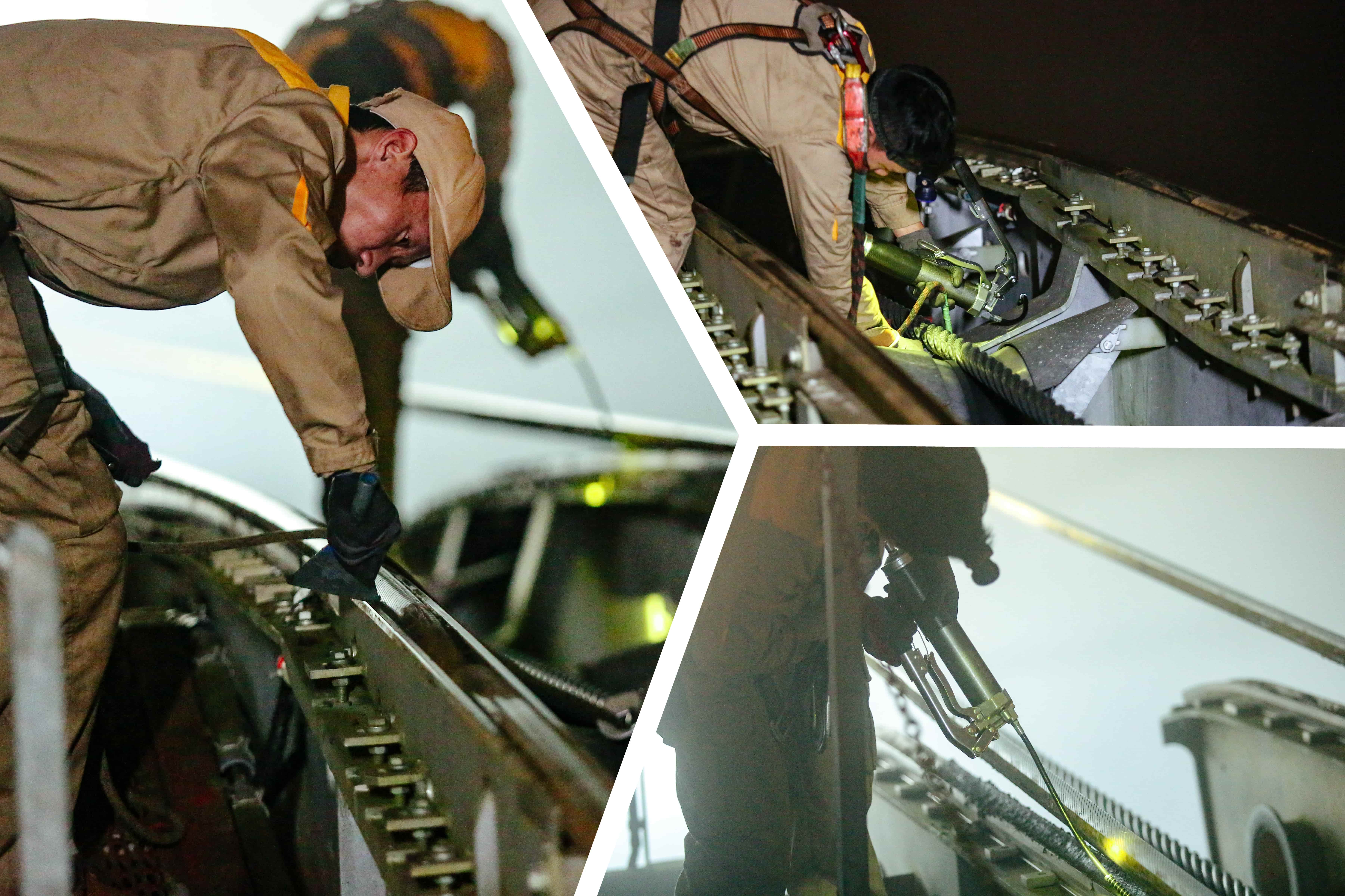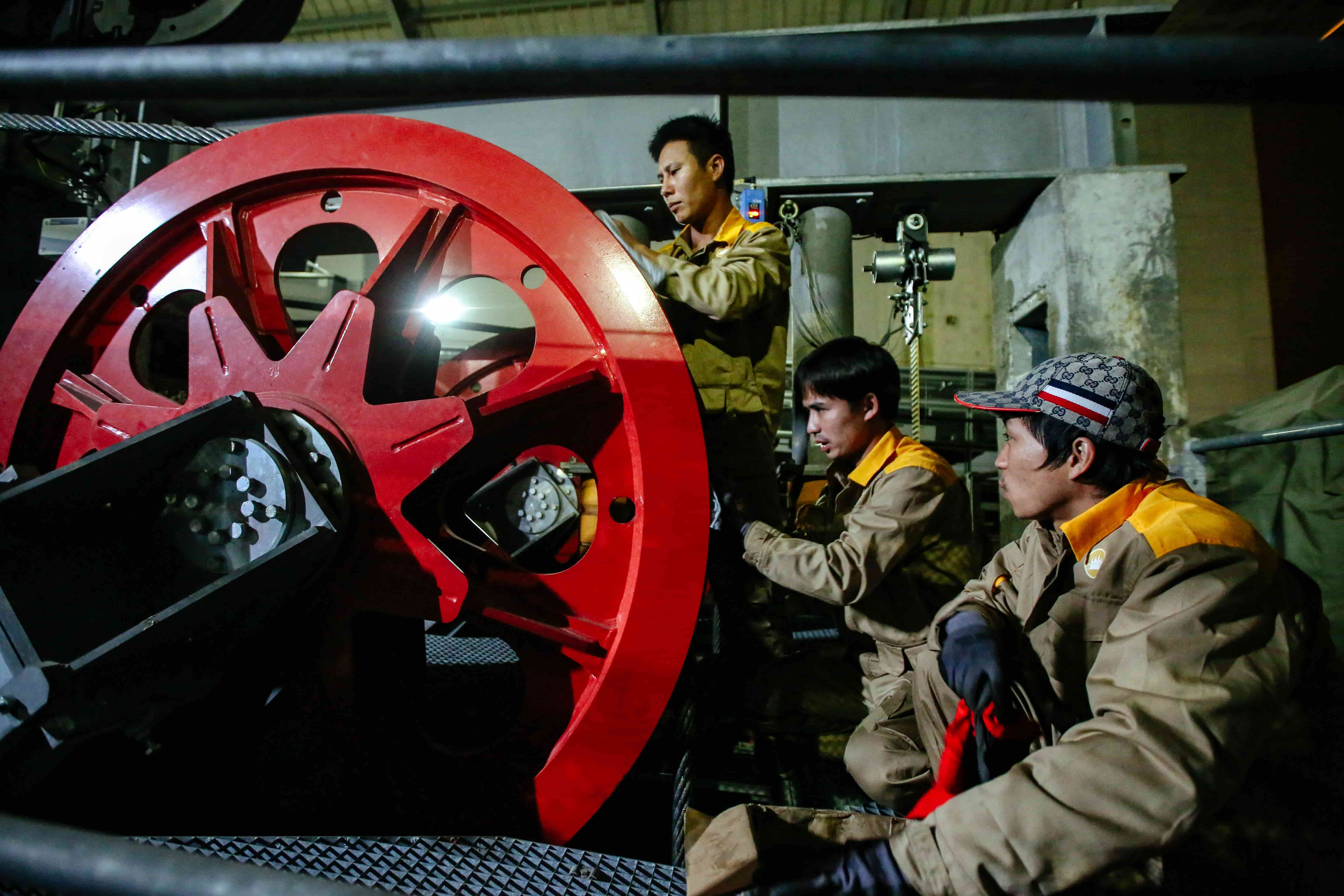 Trong khoảng 4 tiếng, đội bảo dưỡng phải hoàn thiện hết các công việc như bơm dầu, bôi mỡ, kiểm tra buli, kiểm tra cáp xem độ mỏi, độ an toàn, đến thời kỳ thay thì thay đi để đảm bảo độ an toàn.