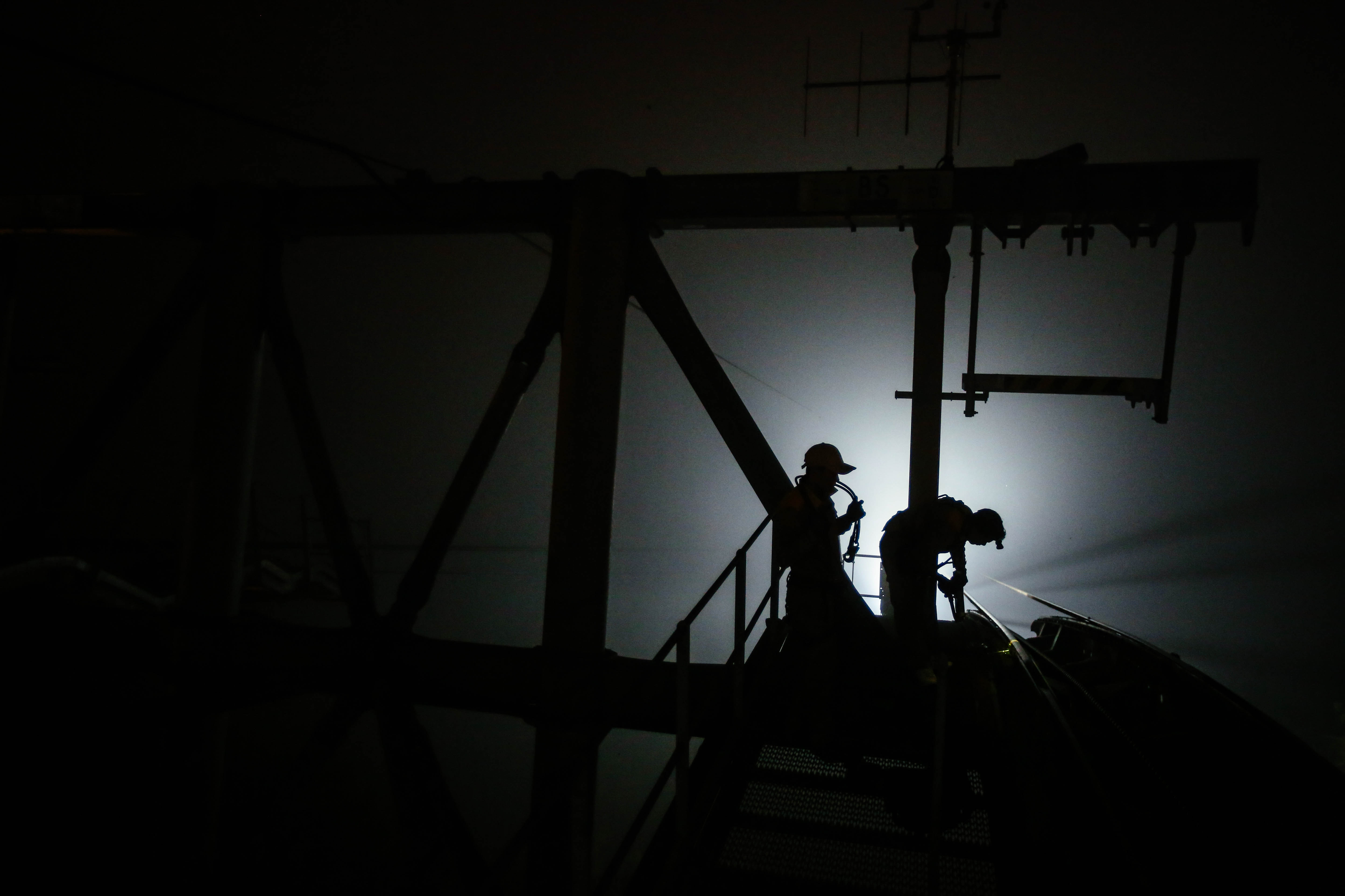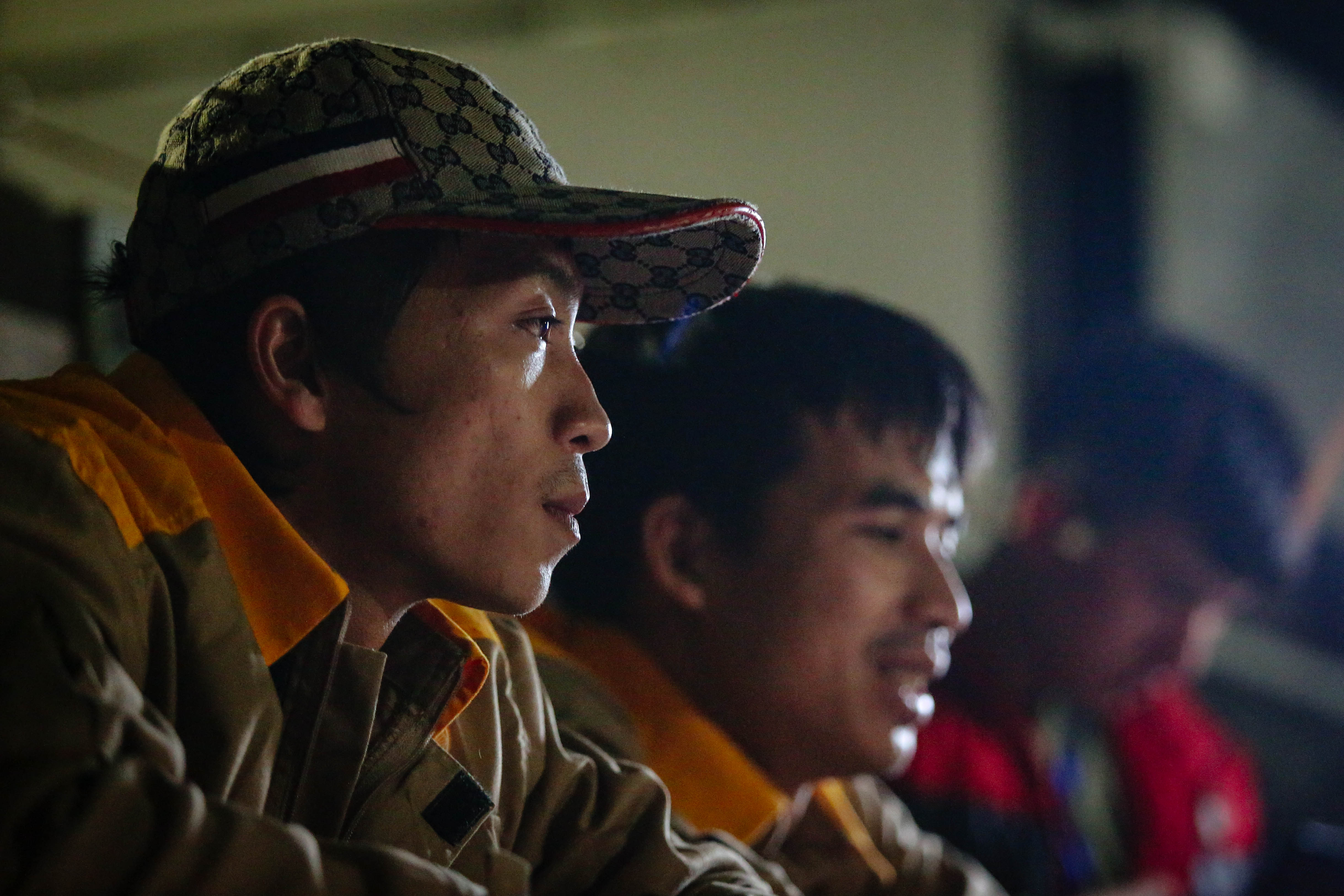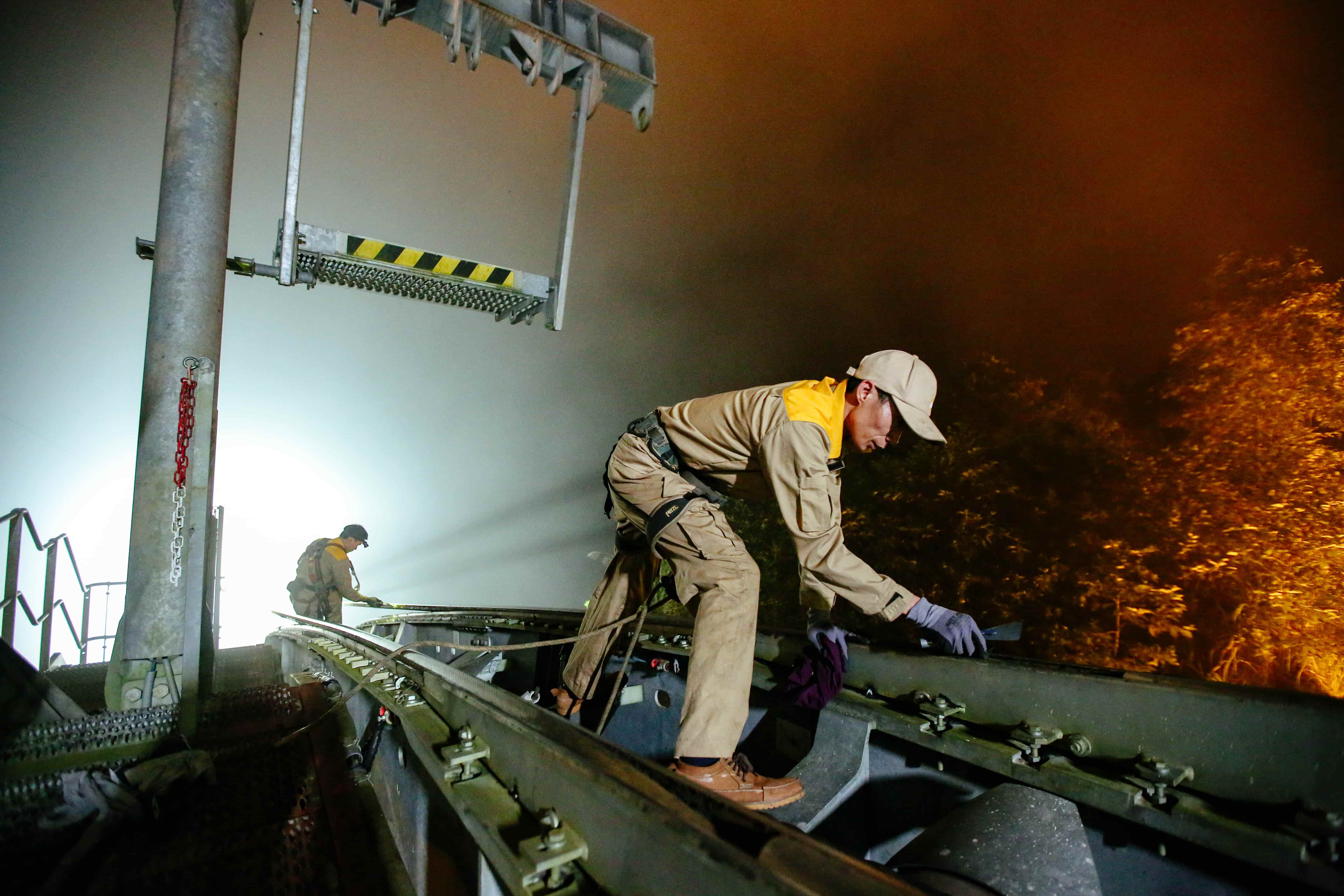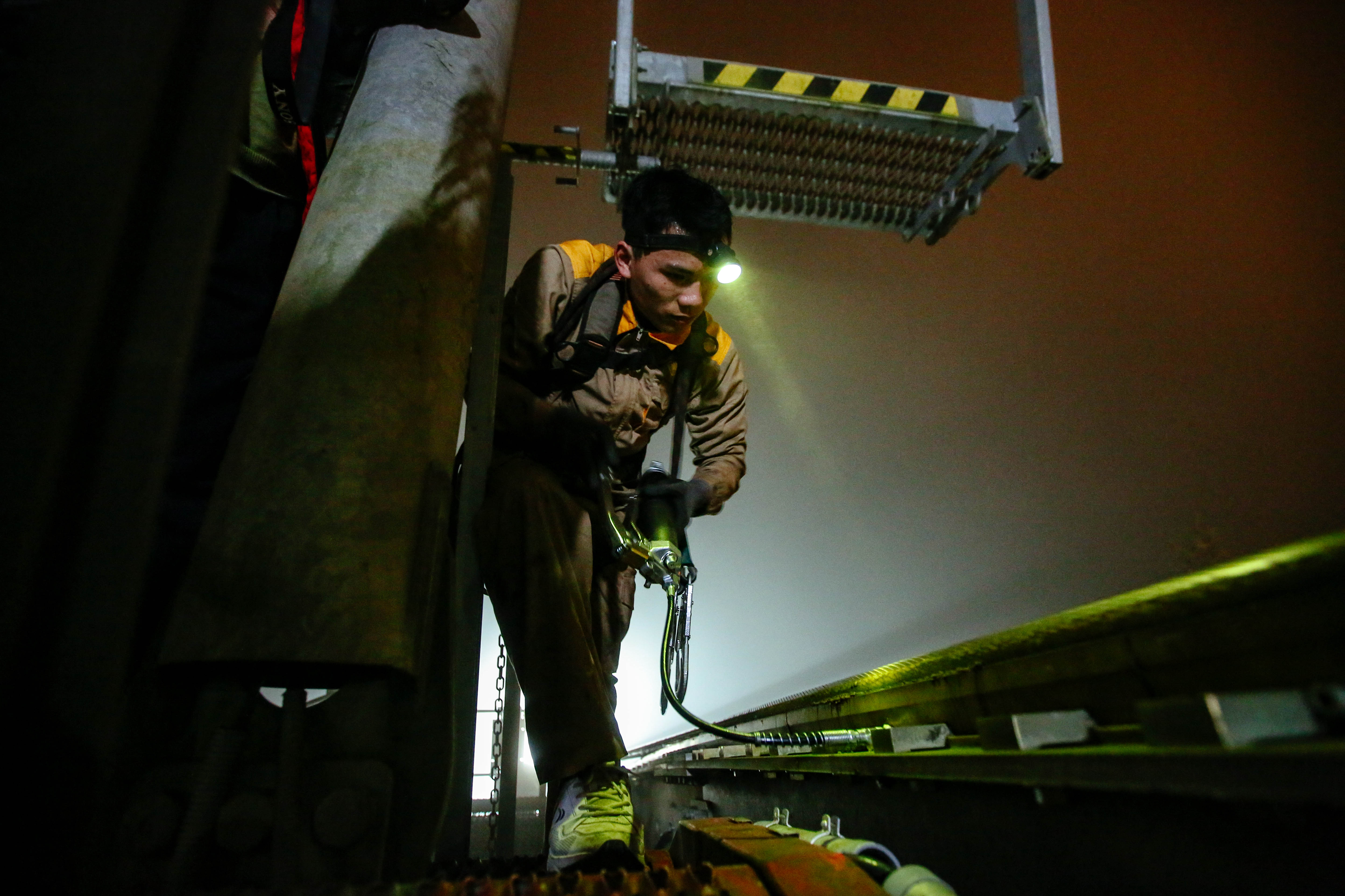 Một ca đêm gồm 5 người lần lượt thay phiên nhau bảo dưỡng từng thành phần của hệ thống cáp treo.