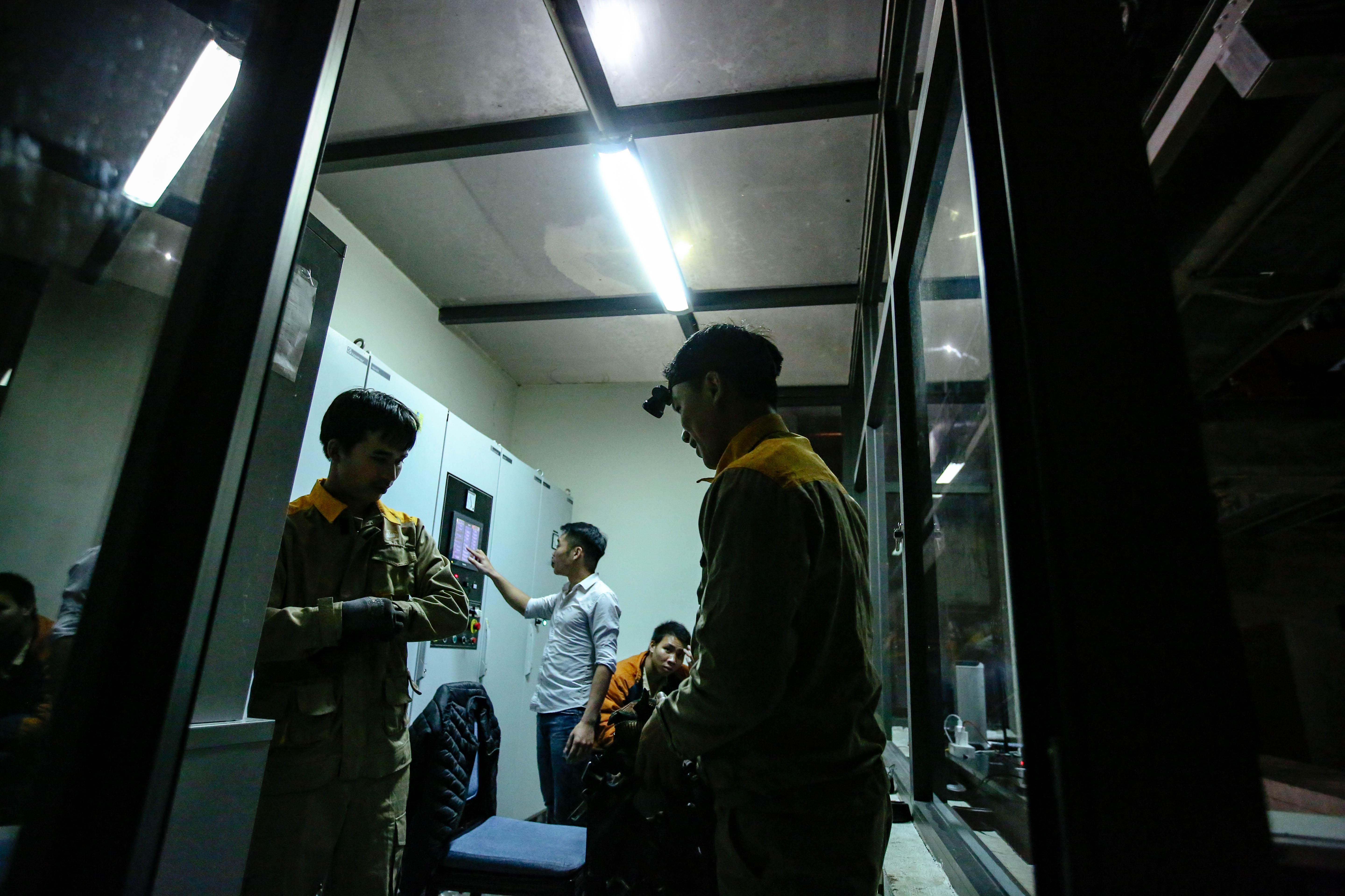 Phía bên trong nhà điều hành luôn có một người túc trực để theo dõi đội bảo dưỡng cáp làm việc đề phòng rủi ro.